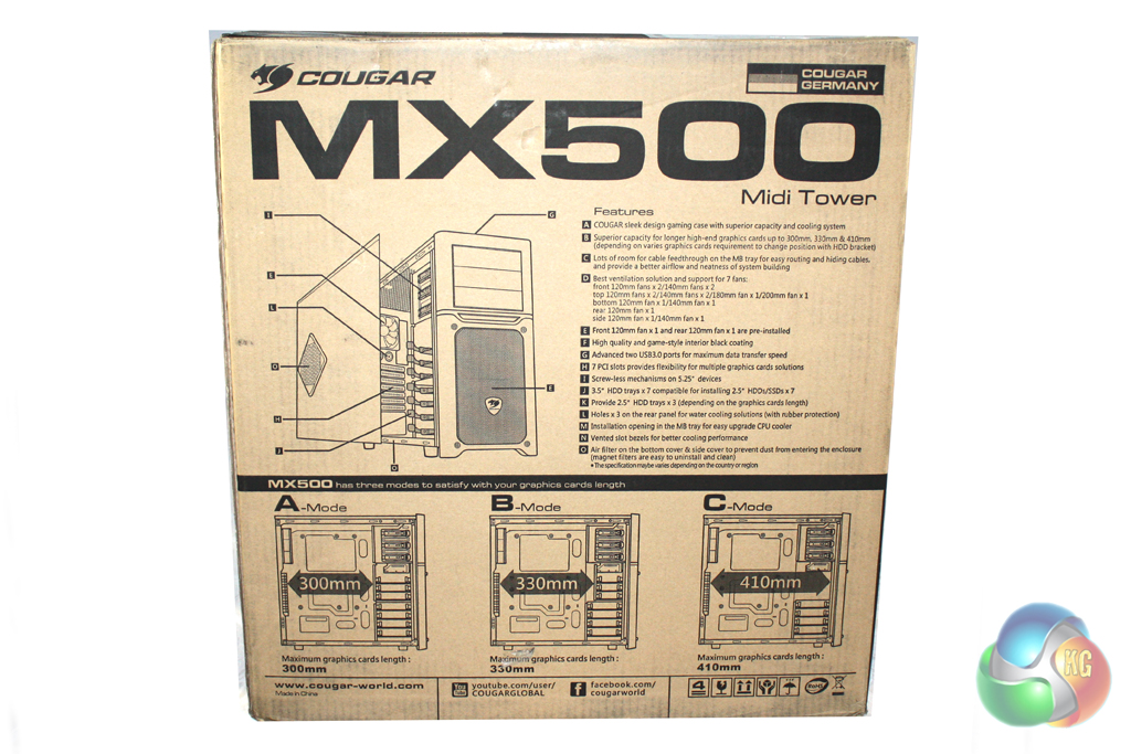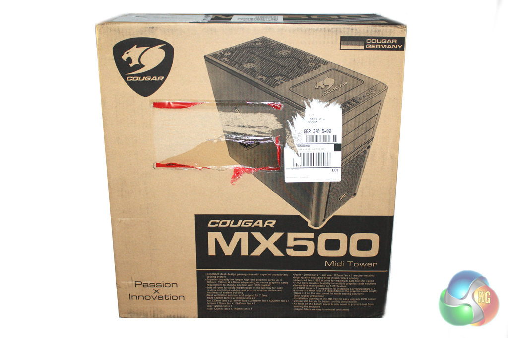 The MX500 is supplied in a standard case box which features a black and brown livery. The front of the box features a large image of the case alongside some basic information.