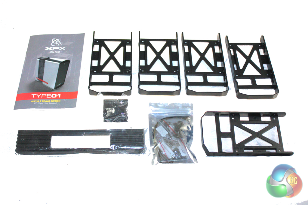 The included accessories are supplied within a small box inside the chassis. The bundle consists predominantly of all of the accessories required for installation. XFX have clearly put some thought into this, though, as they have separated all of the different types of screws into clearly labelled bags.