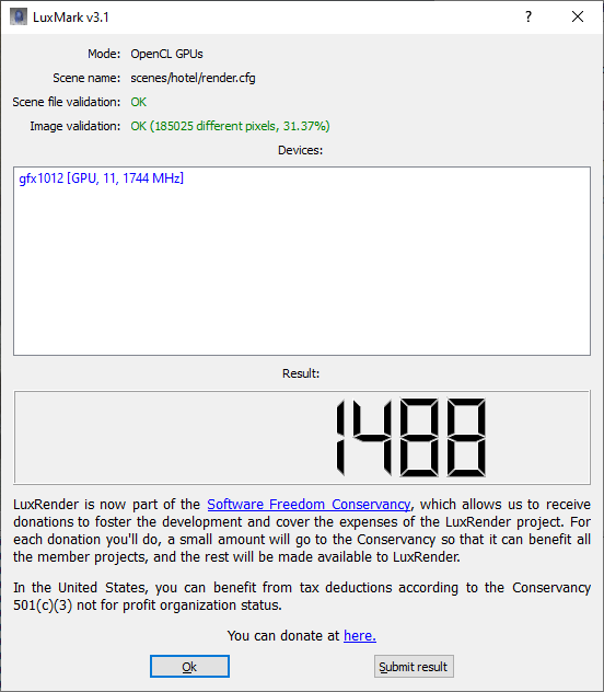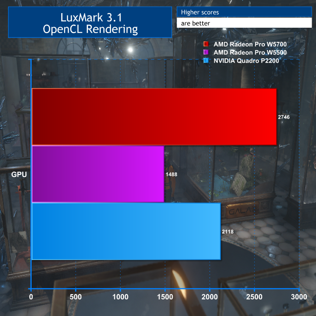 A popular tool for testing OpenCL performance is LuxMark. We rendered the most gruelling Hotel Lobby scene.