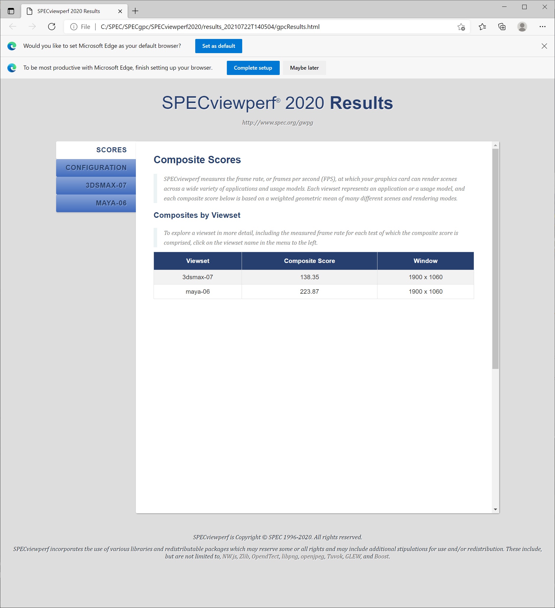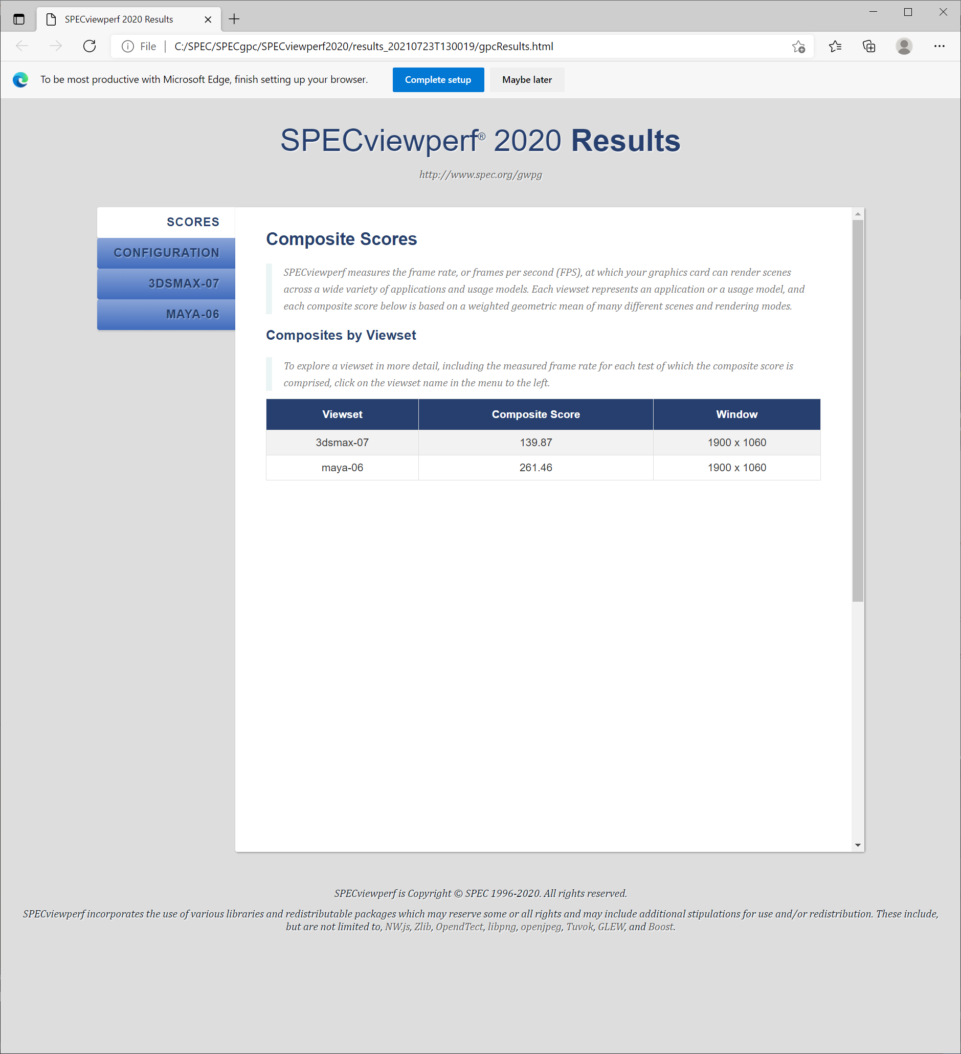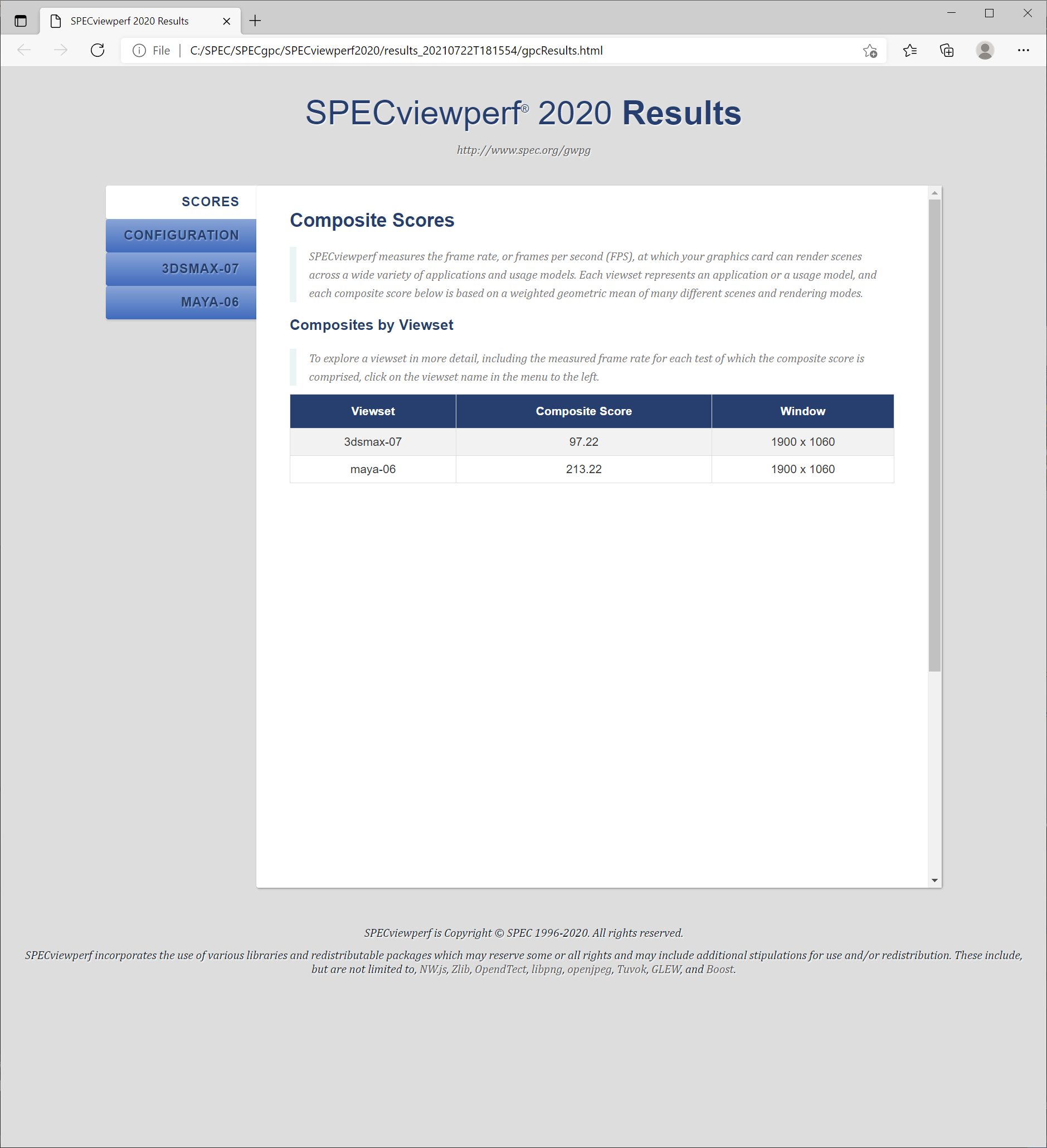 For this test, we set off the Blender Gooseberry benchmark render on a copy of Blender 2.93.2 running on CPU. We set this to render a series of frames so it would take a long time. This is a very highly multithreaded application, which will use all the resources it can.Once the render was running, we fired off the SPECviewperf 2020 test, but only ran 3dsmax-07 and maya-06, because while you would do 3D animation design while rendering a 3D animation, you probably won't be engaged in CAD or scientific visualisation.