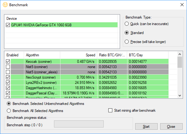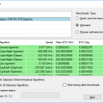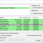 In order to give you a taste of what different hardware is capable of, we chose the algorithms that were considered most profitable during our NiceHash mining. We used the latter’s built-in benchmarking tool to tell us how our hardware selection was performing. We show the raw results below, but have included graphs for the six top algorithms as a sample of performance.