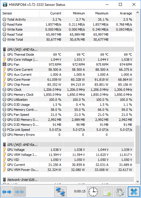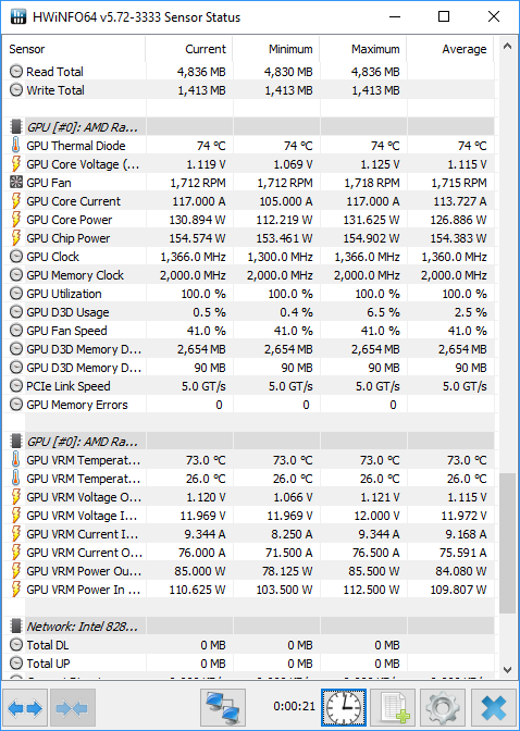 Since power consumption is as important as performance, after benchmarking each piece of hardware we left it mining on NiceHash for a short period and then used HDInfo64 to measure how much power it was consuming on average when mining at full pelt.