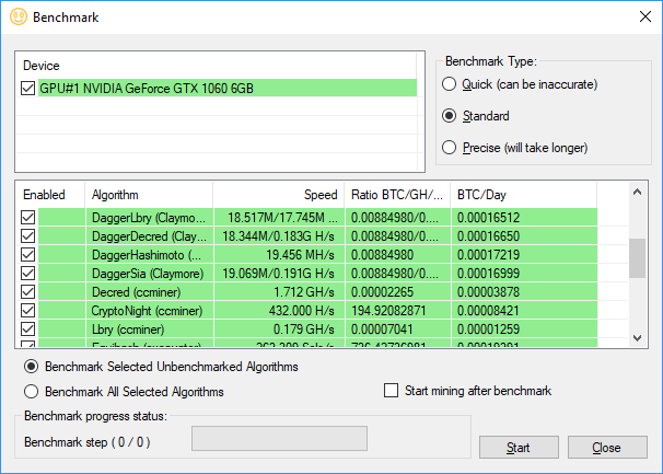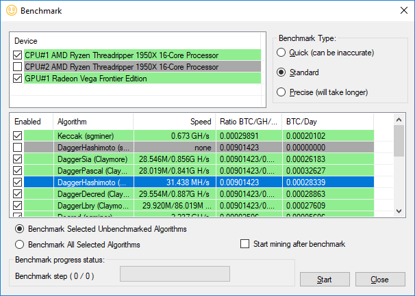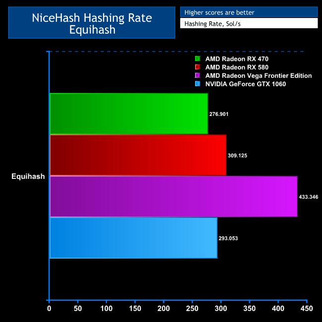 The underlying technologies are also aimed at different GPUs, because NVIDIA predominately uses CUDA for acceleration, and AMD uses OpenCL. CCminer is aimed at CUDA, but there’s a CUDA implementation of EWBF. Claymore supports AMD and NVIDIA GPUs, but CGminer is primarily aimed at ASICs and FPGAs. It used to support GPUs, but that was dropped in 2013. So the technologies and algorithms are competing as well as the hardware, making benchmarking extremely tough.