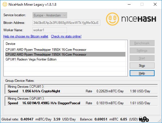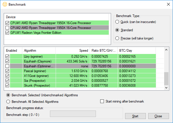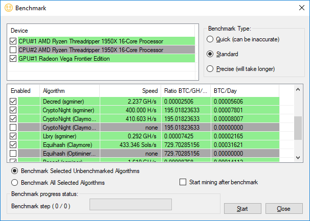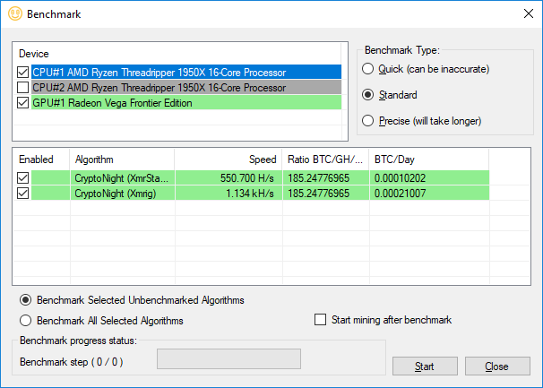As you can see, the 1950X significantly outperforms the GPUs, and at the time of writing this performance equated to a couple of dollars in income a day, as much as a top-end graphics card with its best algorithms.