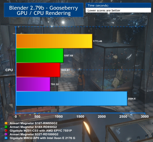 For this test, we used the Armari Magnetar S16T-RW850G2 and S18X-RD850G2, Armari Magnetar S32-RD1000G2 and Gigabyte MZ01-CE0 motherboard with AMD EPYC 7551P for comparison.