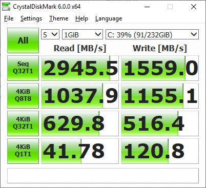 The Samsung 960 EVO M.2 NVMe SSD is a fast storage device. The reading throughput of 2,945.5MB/sec is close to the quickest currently available from NVMe devices, although its writing performance of 1,559MB/sec has been eclipsed by the latest models that are offering write speeds close to their reading performance. Nevertheless, this is around the performance we have seen from the Samsung 960 EVO on other platforms, so the MW32-SP0's M.2 NVMe performance is as expected.