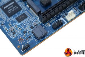 There is only a single M.2 slot, for a boot drive SSD, but you also get the four SlimSAS connectors. You can't hook up a SATA hard disk to one of these directly, however. Instead, you will need to get hold of breakout cables, although one routing a SlimSAS to four SATA III 6Gb/sec connections is only about £15.