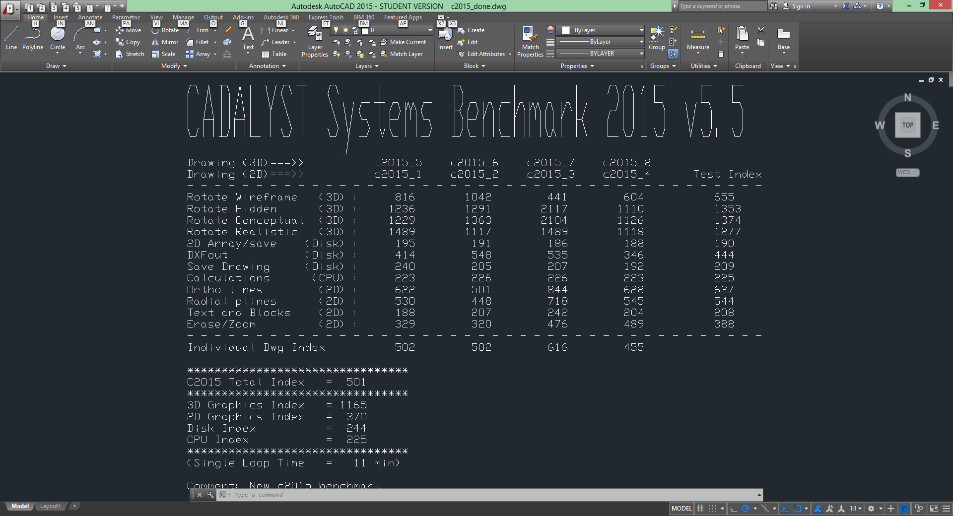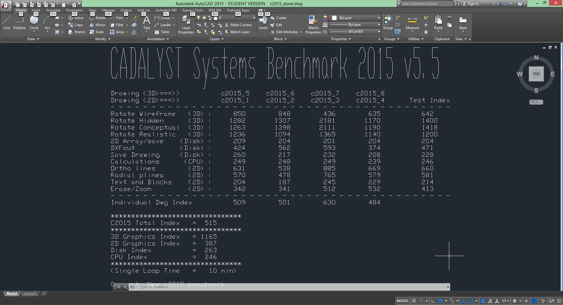 The Cadalyst Systems Benchmark 2015 (C2015) is designed to test and compare the performance of systems running AutoCAD v2000-2015.