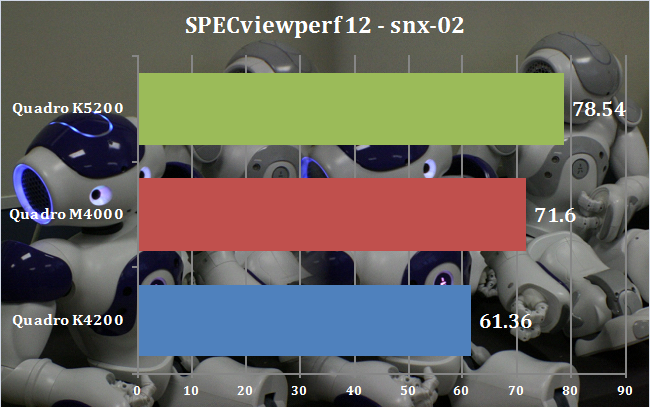 Yet again, we see the M4000 sitting almost equally between its two predecessors. Again, it's 17 per cent faster than the K4200, but 10 per cent behind the K5200.