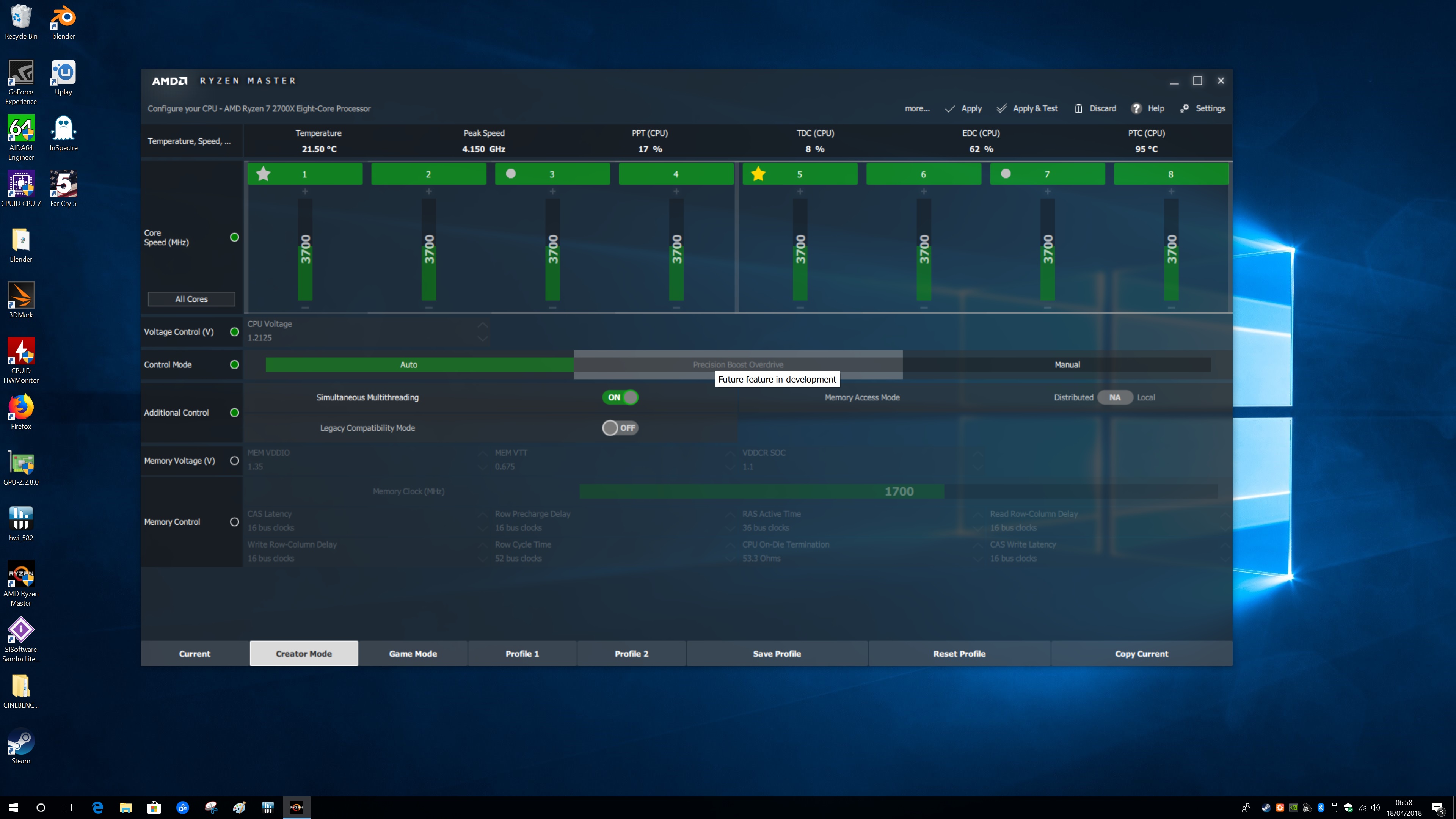 We overclocked by increasing core voltage to 1.35V for the new CPUs and 1.4V for the older models, increasing LLC and raising the core multiplier before testing with Blender to check for stability.