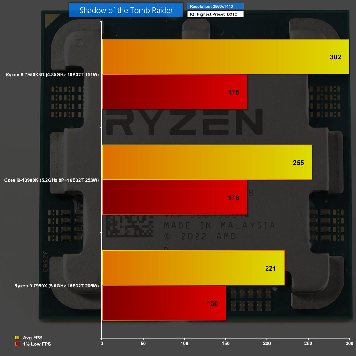 The stratospheric frame rates in Shadow of the Tomb Raider indicate the age of this game. All three CPUs do well however the Ryzen 9 7950X is the cream of the crop.