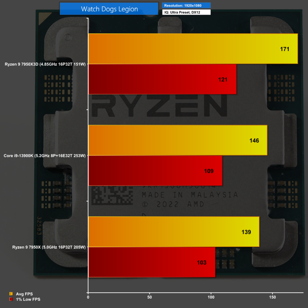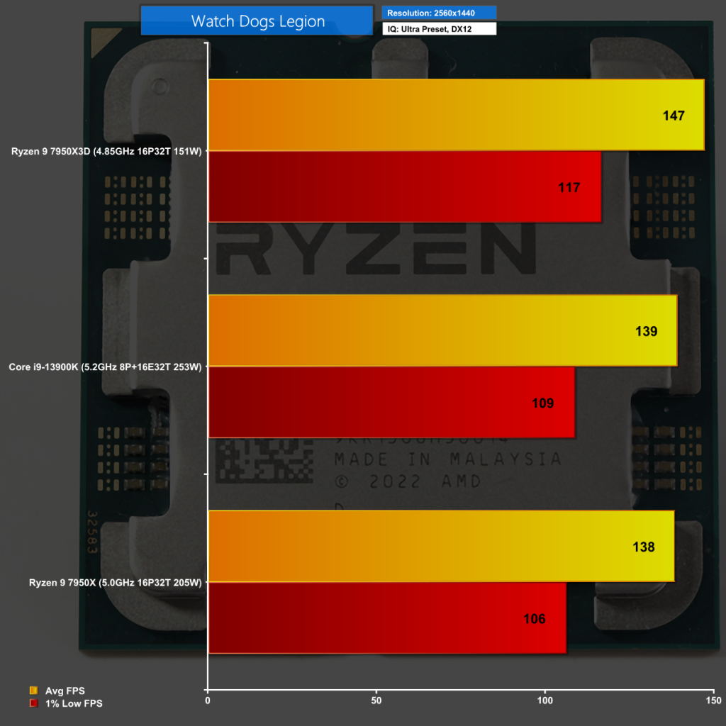 Watch Dogs: Legion is effectively a dead heat at 1440p with very little separating the three CPUs.