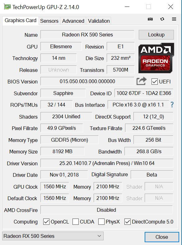 AMD has launched a new graphics chip called Radeon RX 590 that was codenamed Polaris 30 during its development. You will recall that Polaris 10 launched in June 2016 as RX 480 using 14nm FinFET fabrication process and was followed by Polaris 20 in April 2017 as RX 580. Radeon RX 590 uses a 12nm process to shrink the features of the GPU which allows a significant boost in clock speed. Sapphire Nitro+ RX 580 has a Boost Core speed of 1,380MHz while the Sapphire Nitro+ RX 590 hits 1,560MHz, so we are talking about the best part of 200MHz improvement.