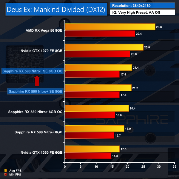 AMD states the reference memory bandwidth for the 8GB of GDDR5 is 256GB/sec. When you work back through the 256-bit controller you arrive at an effective reference memory speed of 8000MHz (2000MHz actual). Sapphire uses a memory speed of 8400MHz in the Nitro+ which is a five percent speed bump over stock so we expect the Sapphire Nitro+ RX 590 would show a modest gain over a reference design, if such a thing even exists.