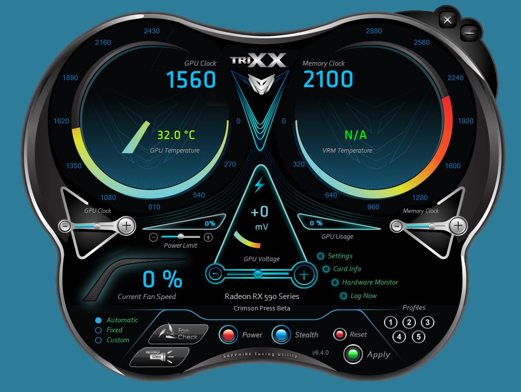 By contrast Nitro+ RX 590 seems to be delivered close to the limits of performance. Increasing the core voltage by more than +20mV caused the graphics core to throttle to 1,300MHz with a corresponding drop in performance. After some experimentation we settled for a tiny core increase of 40MHz to 1,600MHz and left the memory speed untouched at 8,400MHz.