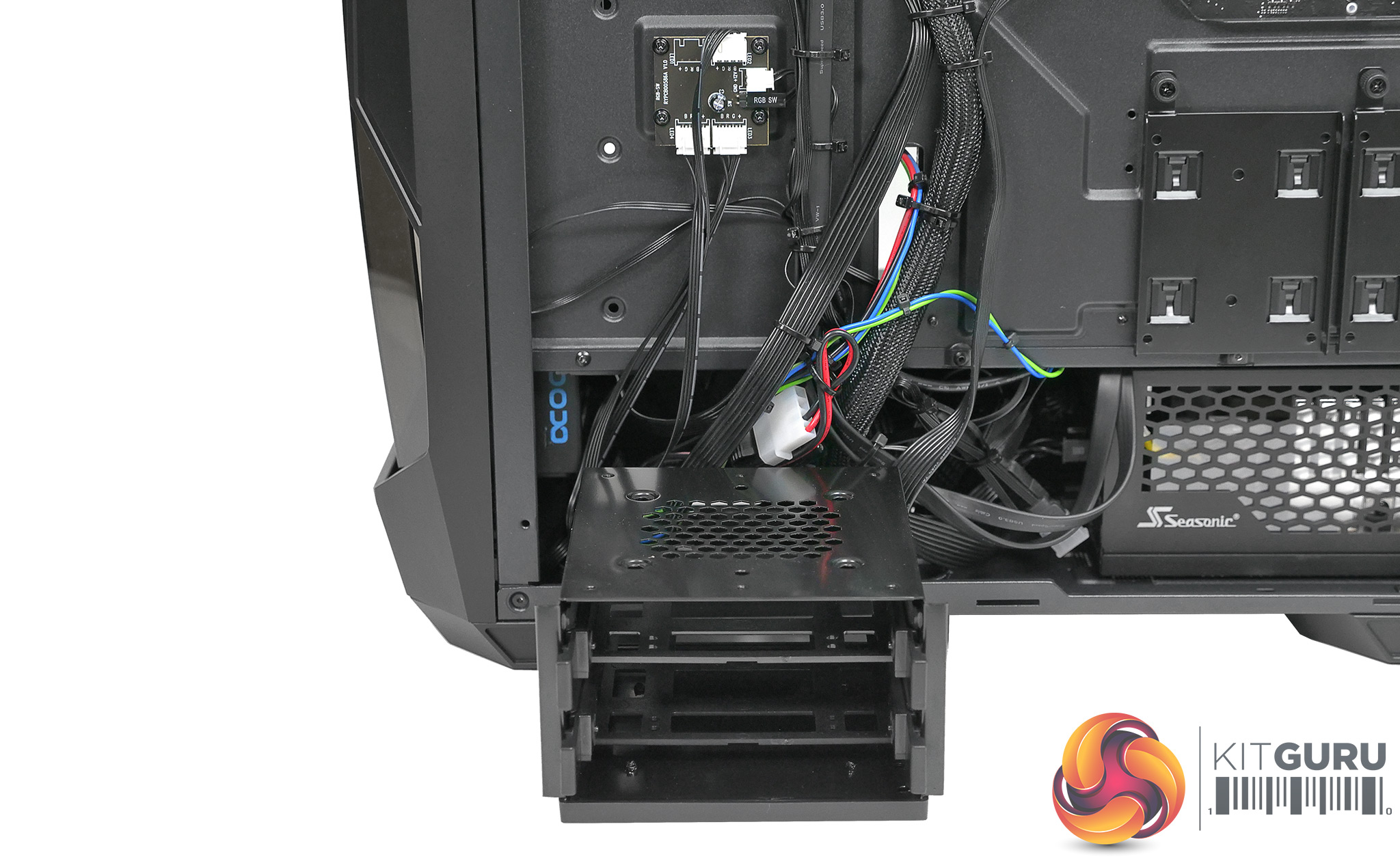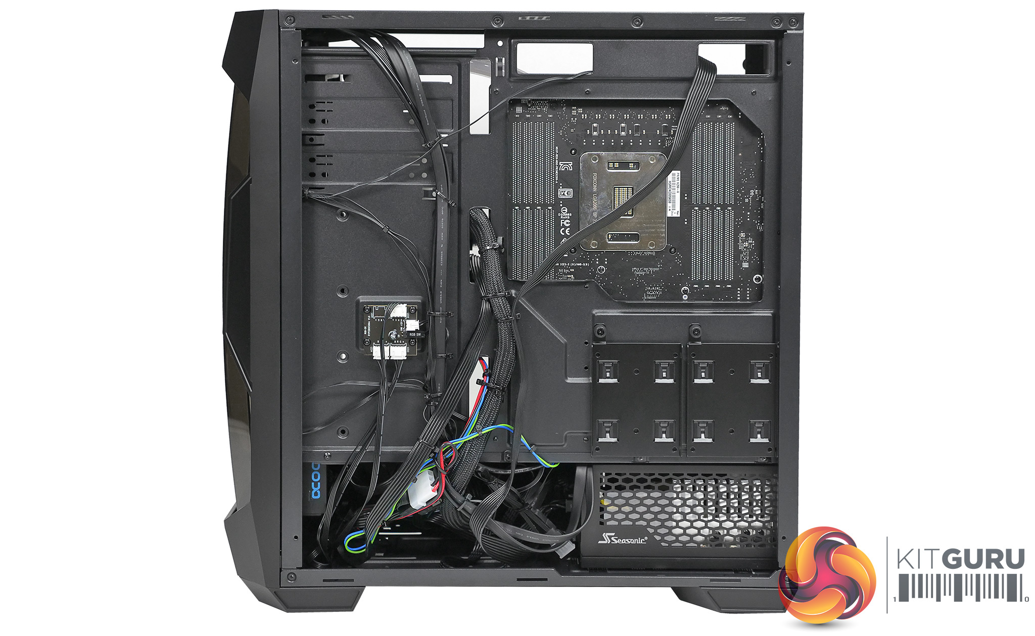 As you will have seen in our video we installed a custom loop cooling system and found the interior of the case was tight for space. We had little trouble squeezing in the components, however the single biggest problem was the installation of the Seasonic power supply as there is barely enough room to slide it in from the side. The On/Off rocker switch next to the power plug almost defeated us so let us say once again, the DF500 RGB is incredibly tight for space.