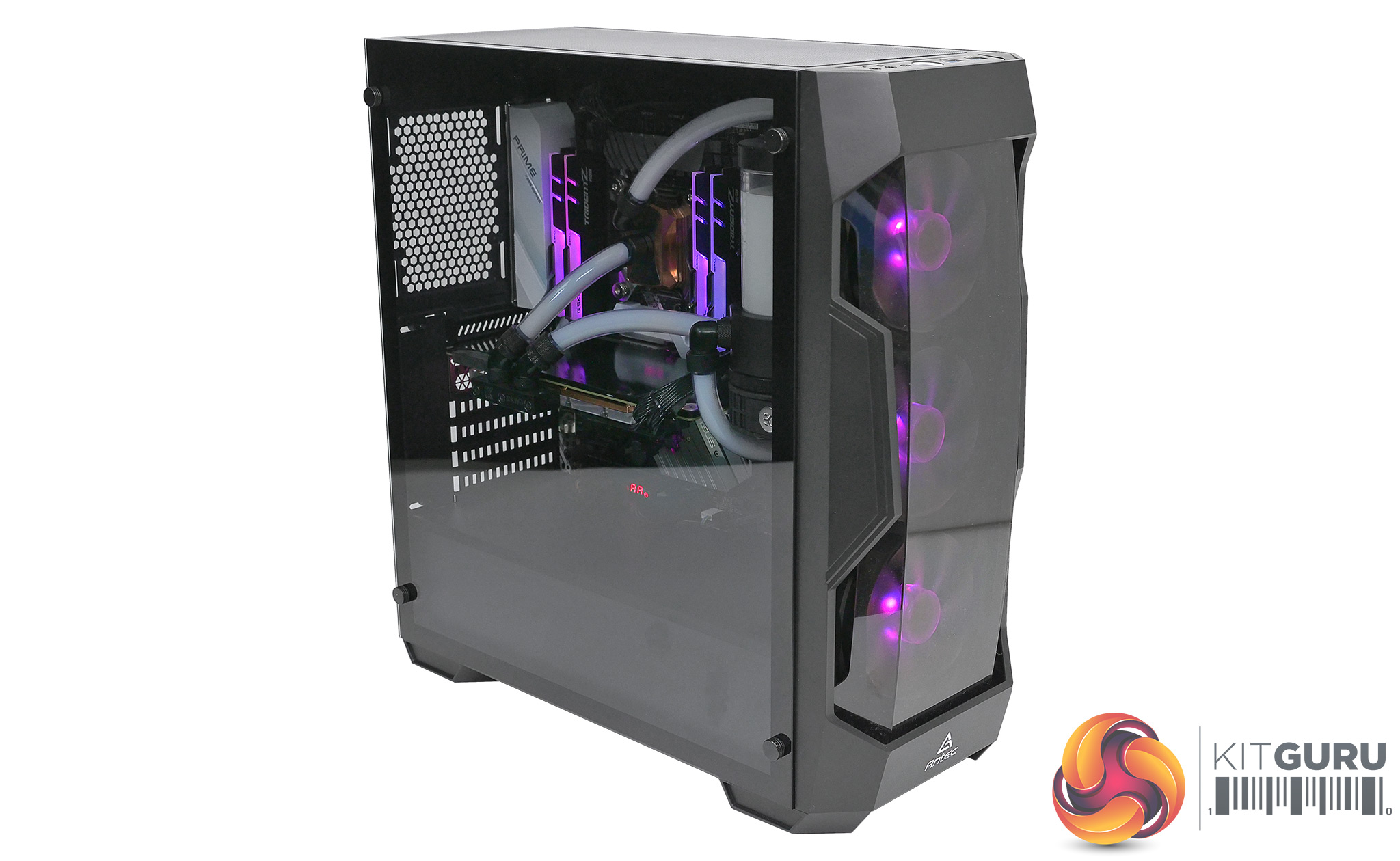 Building our test PC was a struggle in a number of areas. We detail these problems in our video and readily acknowledge that each individual issue looks fairly minor. There is no space below the motherboard, the cable management holes are tight, it is tricky to install the power supply, the number of cable anchor points is limited and the three fans lack PWM control. The two options for controlling the fans are to either find three separate fan headers on your motherboard or to use the constant power Y cable that is provided in the accessory pack. Both solutions are workable but neither is ideal and we would have been happier should Antec have provided a PWM hub. Better yet, the fans could have had PWM control and perhaps more LEDs in the hub to enhance the RGB experience, and wouldn’t it have been nice if they upgraded the RGB to Addressable RGB?