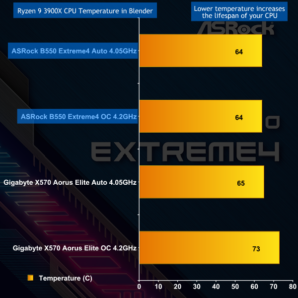 ASRock runs the Ryzen 9 3900X on the bare minimum of power and the result is very low CPU temperatures. Admittedly we were using a 360mm Fractal Design Celsius S36 cooler but it is clear we could have used a 240mm cooler without any difficulty. When we think back to the early days of Ryzen 7 and X370 these sorts of temperatures are simply amazing to see.