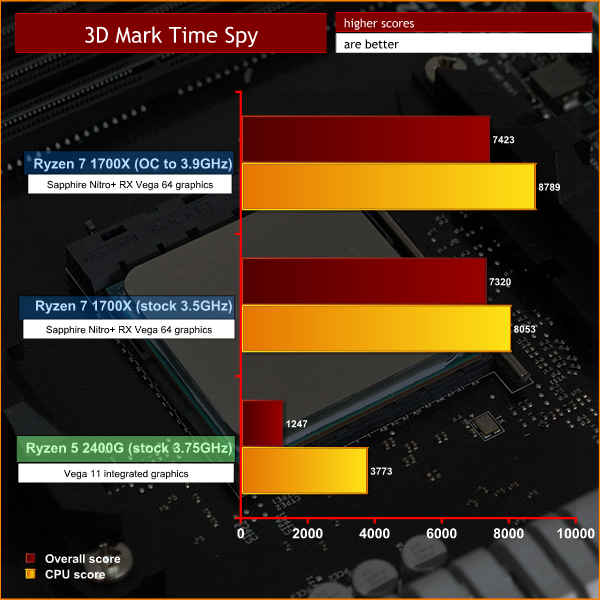 We overclocked our Ryzen 7 1700X to 3.9GHz on all cores using 1.35V and that took our CPU to the ragged edge. It was stable in Cinebench R15, crashed in Blender and delivered a handful of extra fps when gaming, depending on the resolution we used.