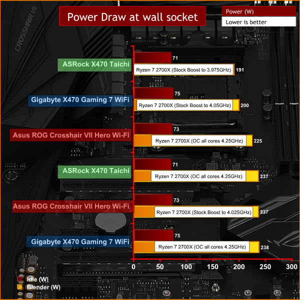 With the BIOS on Auto we were unimpressed by the high power draw. While Auto delivered high performance for a CPU running at ‘stock’ clocks we’re only talking about an extra two percent compared to ASRock X470 Taichi or Gigabyte X470 Aorus Gaming 7. That is a minor difference, however it gives Asus the right to boast about having ‘the highest performance out of the box’ (should they care to make that claim).