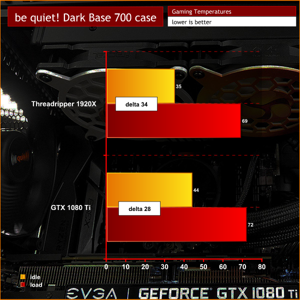 To put this case through its cooling paces we will be using a test system consisting of an AMD Threadripper 1920X CPU and GTX 1080 Ti graphics card. This system allows us to produce a substantial amount of heat and effectively test the be quiet! Dark Base 700‘s cooling capabilities.