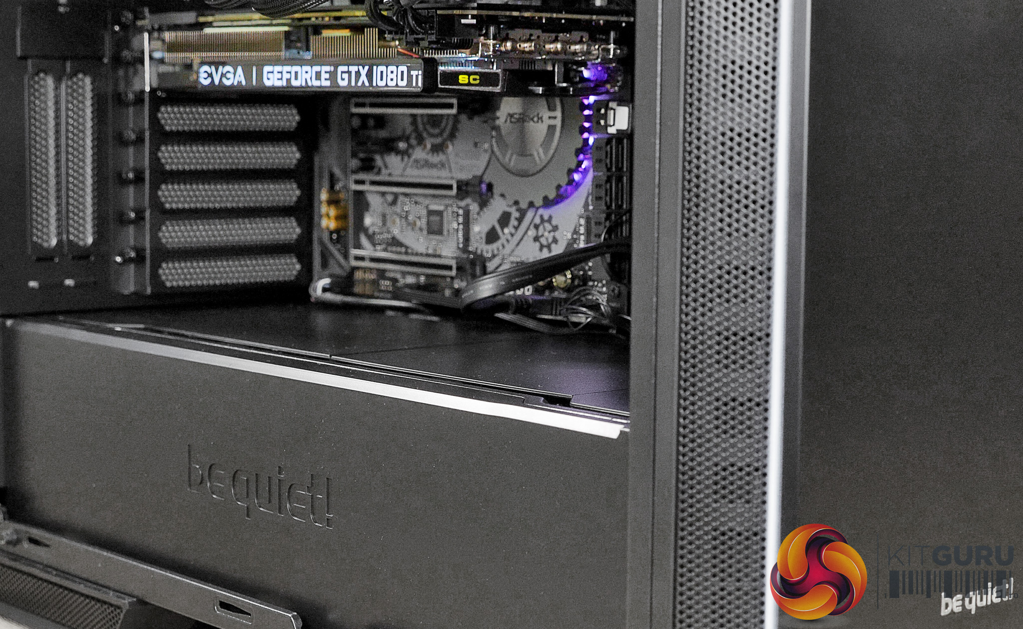 The be quiet! Dark Base 700 is very quiet, provided the fans are turned down to a modest speed. The construction of the case with sound deadening material and slotted intakes at the front reduces noise levels but nonetheless if you crank up the fans they will be clearly audible.