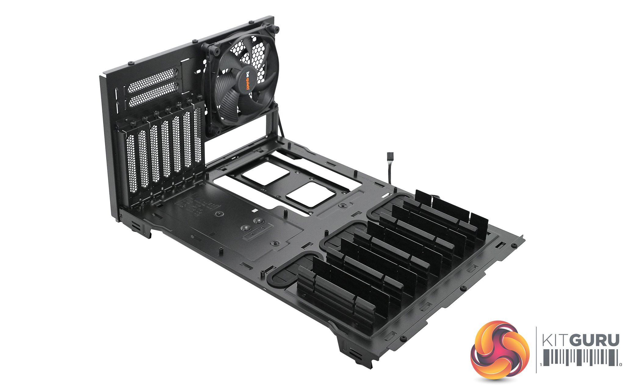 The be quiet! Dark Base 700 sits in their product range below the Dark Base 900 Pro and delivers the feature where you can flip the motherboard tray to the opposite side of the case, or you can remove it and use it as a test stand. The motherboard mechanism used in the 700 is different to the 900 and looks a good deal cheaper but it must necessarily affect the price of the 700 and it certainly impacts the design in terms of cable management.