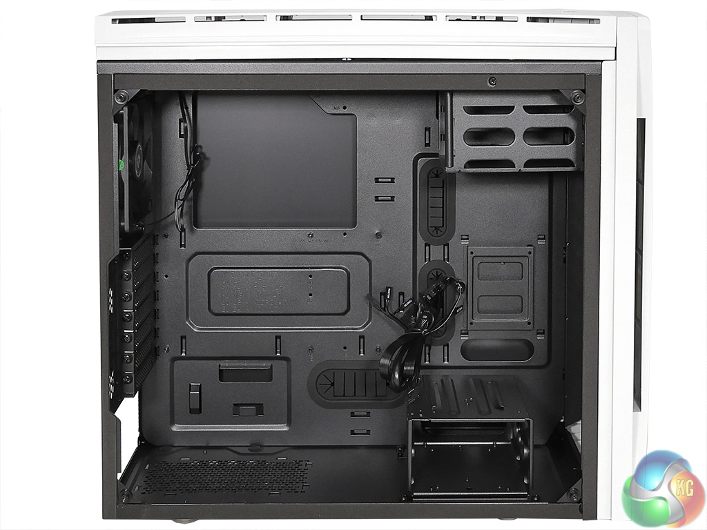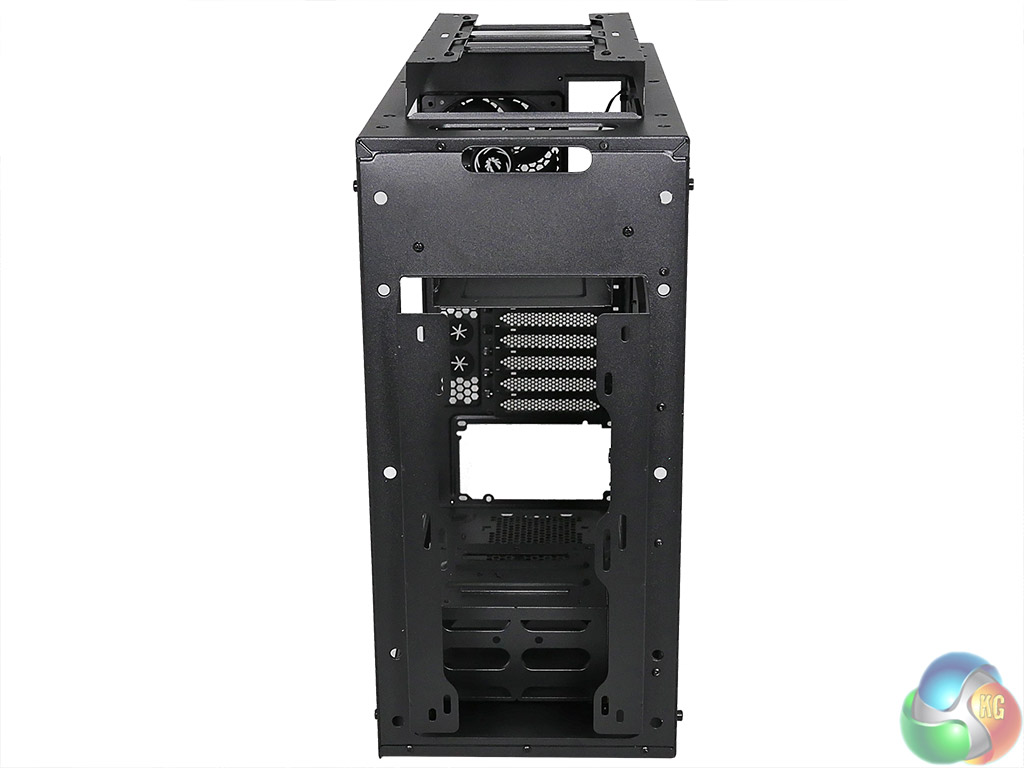 The photos and text in the BitFenix press information pack promise clear glass, however we have now learned that the panels will indeed be tinted, just like the panel in our video and photos. The back panel is opaque black and completely hides any cabling mess that you choose to tuck behind the motherboard tray. That’s a neat touch and effectively turns the back panel into a black mirror.