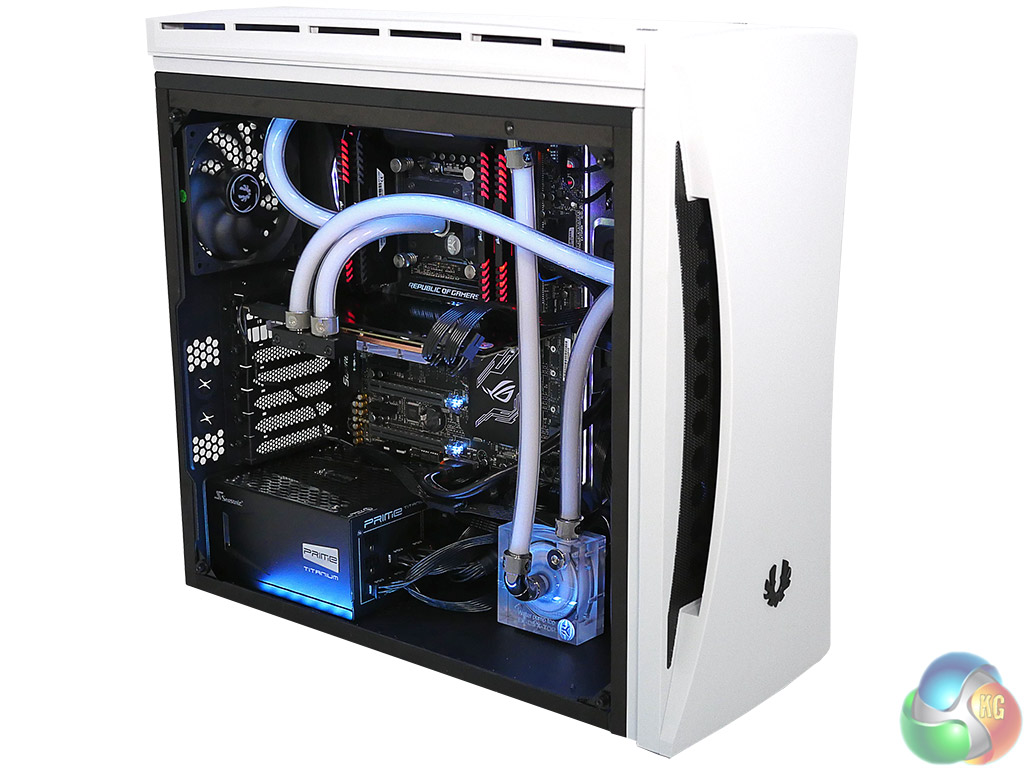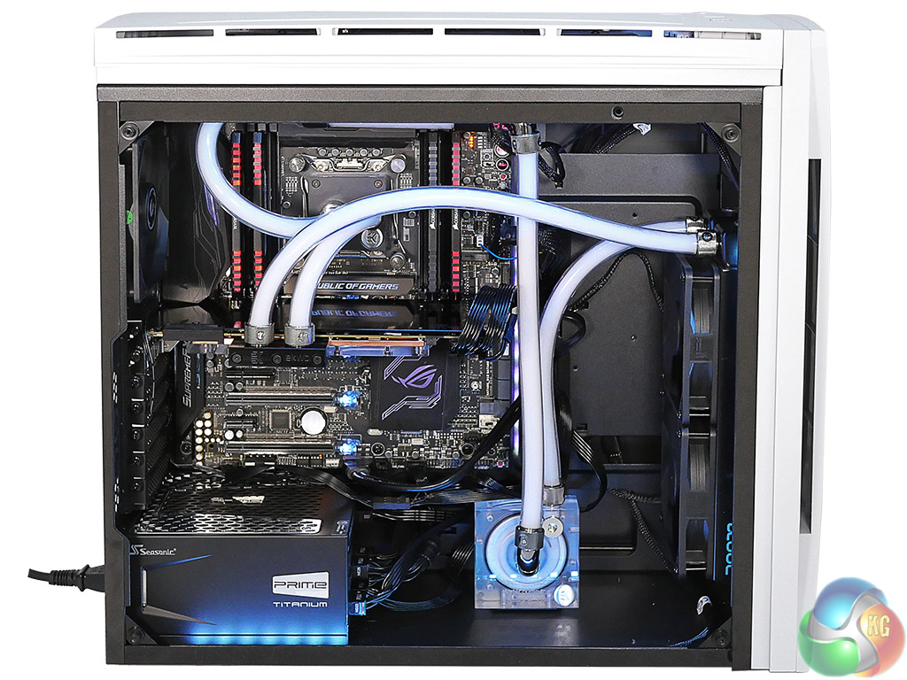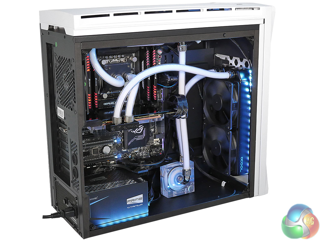 The problem with installing a custom loop is that you will likely have to remove most of the drive bays, just as we found in our video. If you want to get the most from the lighting you need to buy an expensive Asus motherboard along with some BitFenix LED strips.