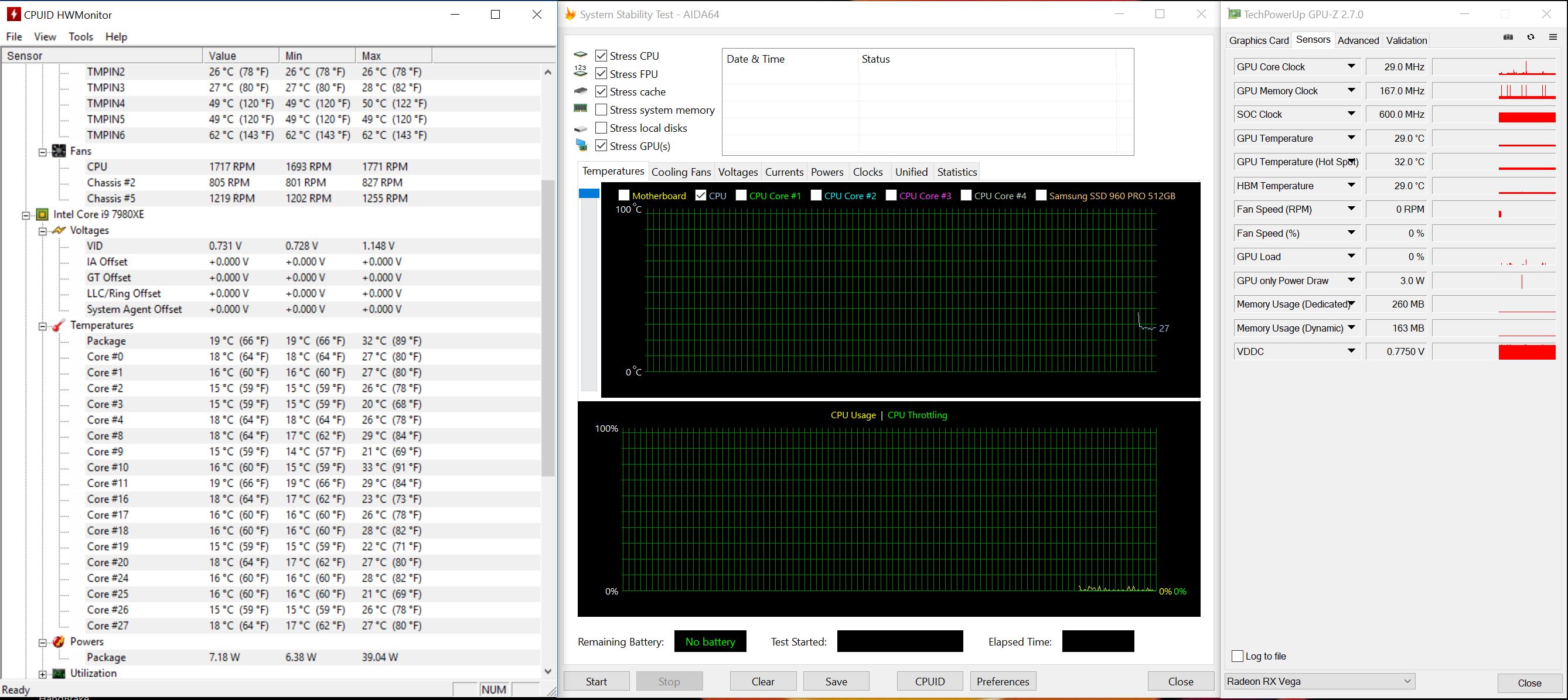 To put this case through its cooling paces we will be using a test system consisting of an Intel Core i9-7980XE, Sapphire Vega 64 and an SSD. This system allows us to produce a substantial amount of heat and effectively test the Cooler Master MasterCase H500P Mesh White‘s cooling capabilities.