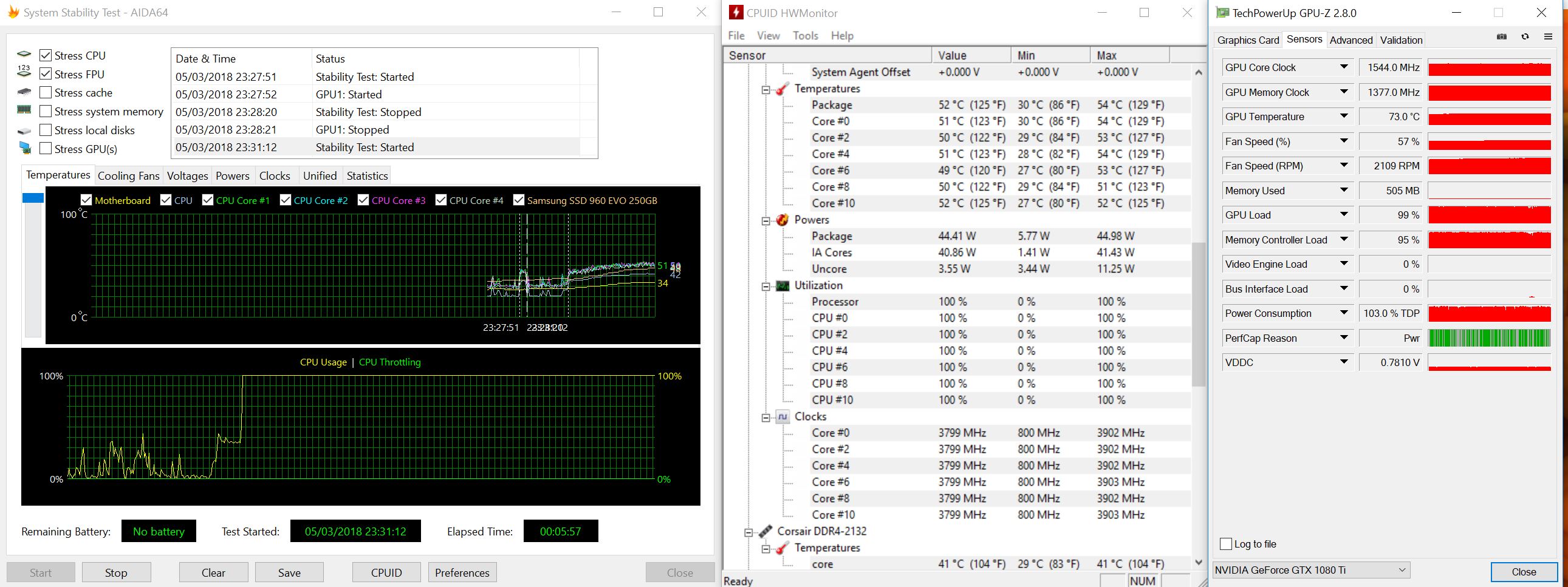 For stress testing we use AIDA64 to create the maximum amount of load our CPU and GPU are ever likely to see.