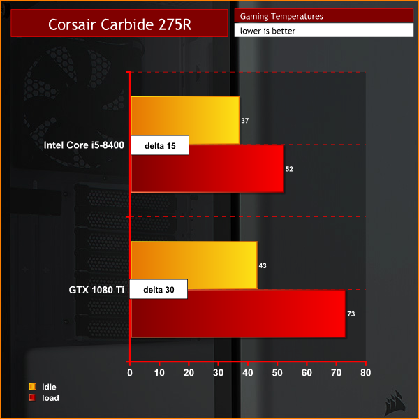 To put this case through its cooling paces we will be using a test system consisting of a Core i5-8400, EVGA GTX 1080 Ti and an SSD. This system allows us to produce a substantial amount of heat and effectively test the Corsair Carbide 275R’s cooling capabilities.