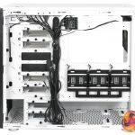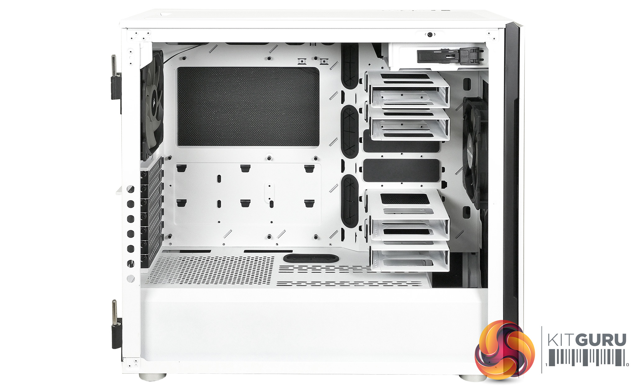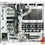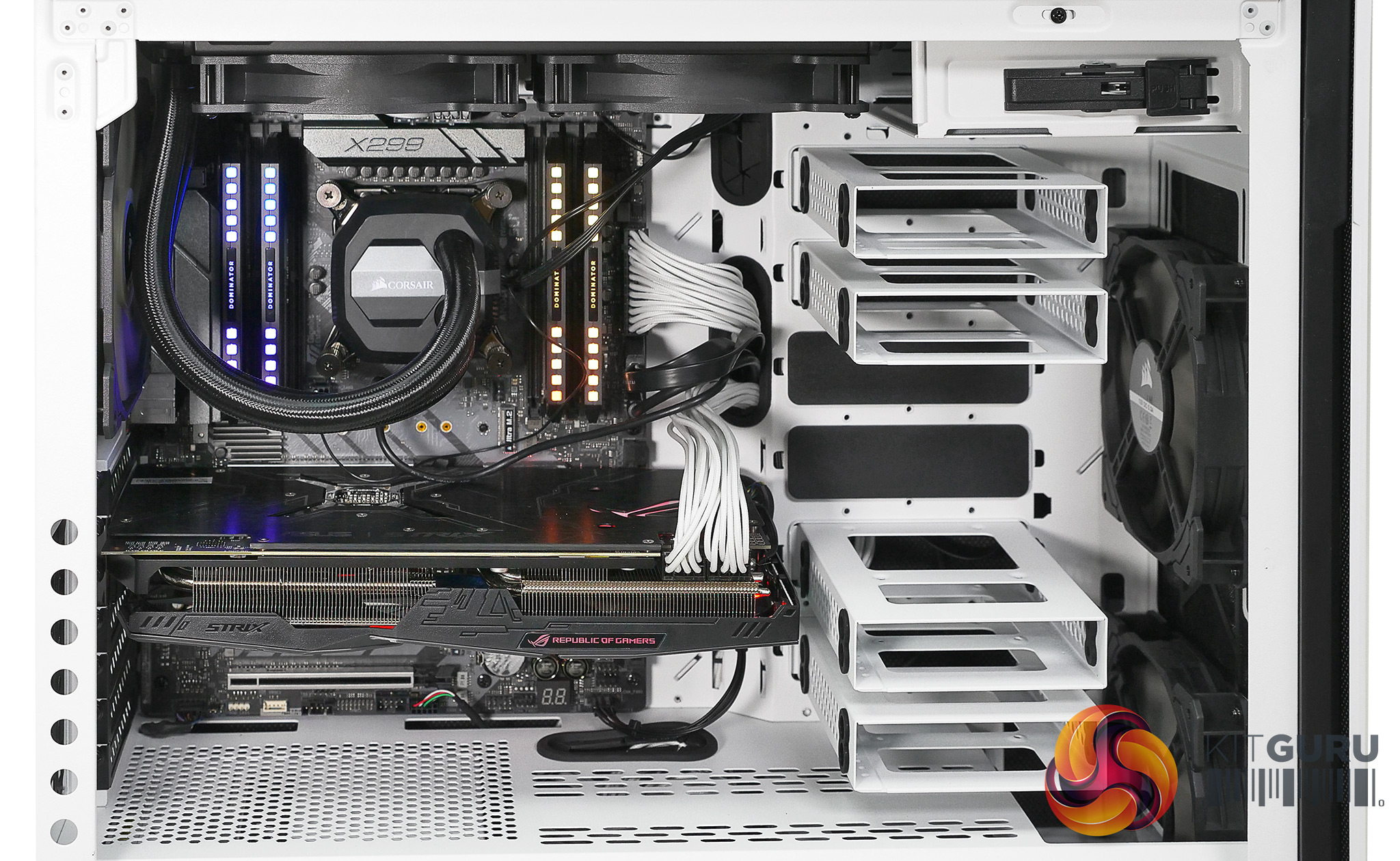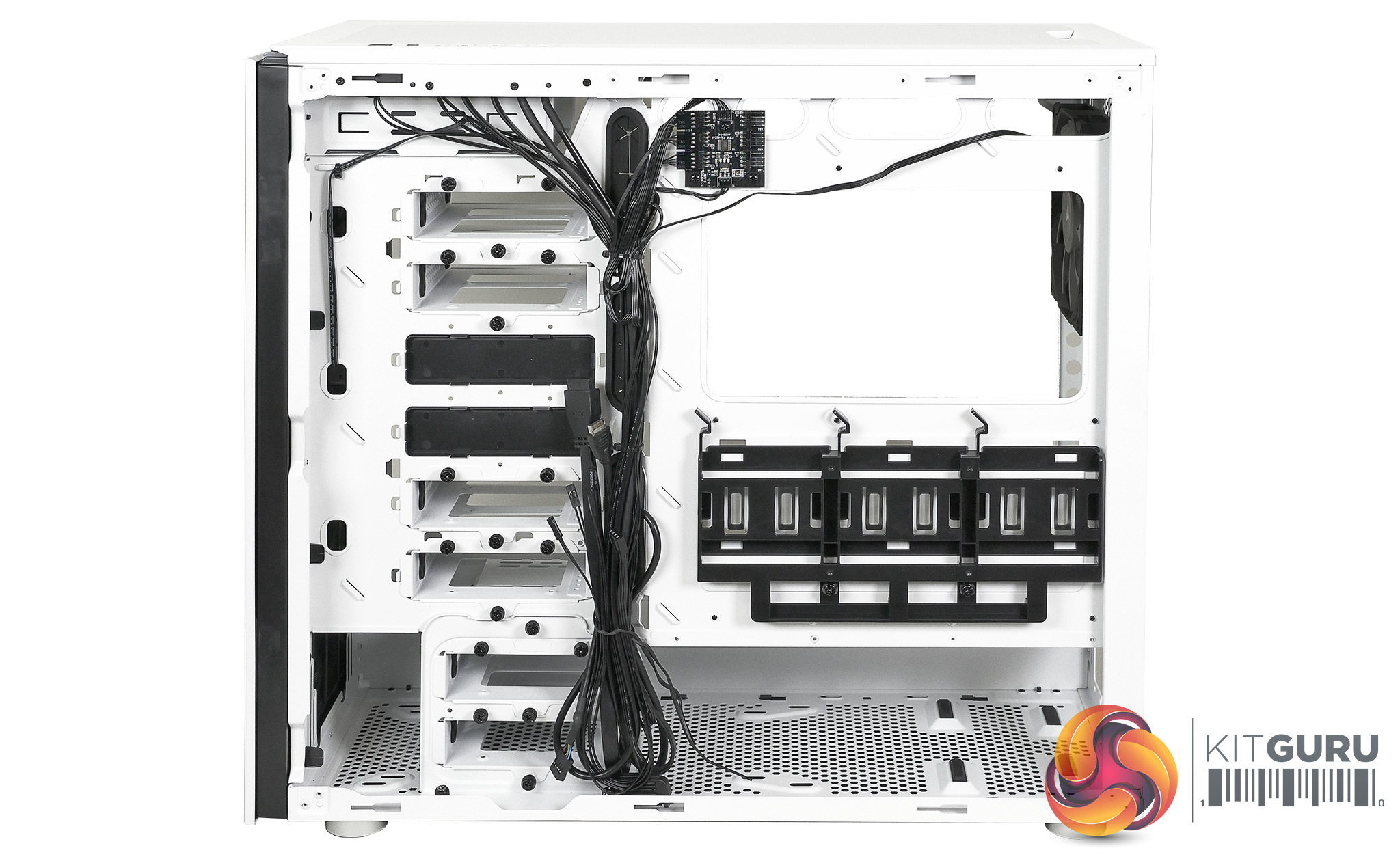 You might expect that cables could simply vanish behind the back panel and to an extent you would be correct, however the arrangement of the four drive caddies means you can can see clean through the mid plate of the case in a number of areas – so decent cable management is required. If you remove the Be quiet!-esque drive caddies you end up with four large holes in the mid-panel as Corsair does not supply extra blanking plugs. These holes are unseemly and also have the potential to reveal the cables in the rear compartment.