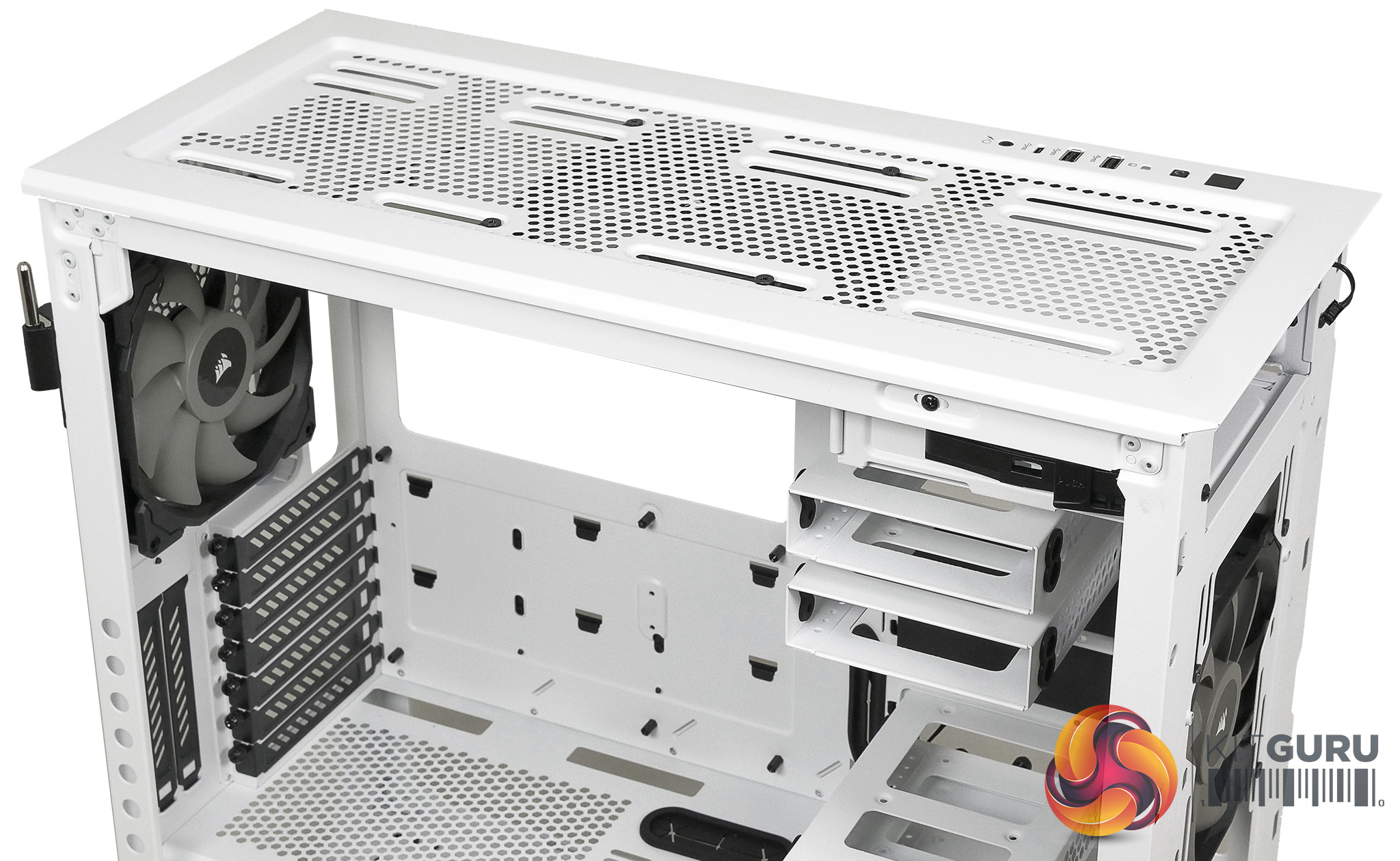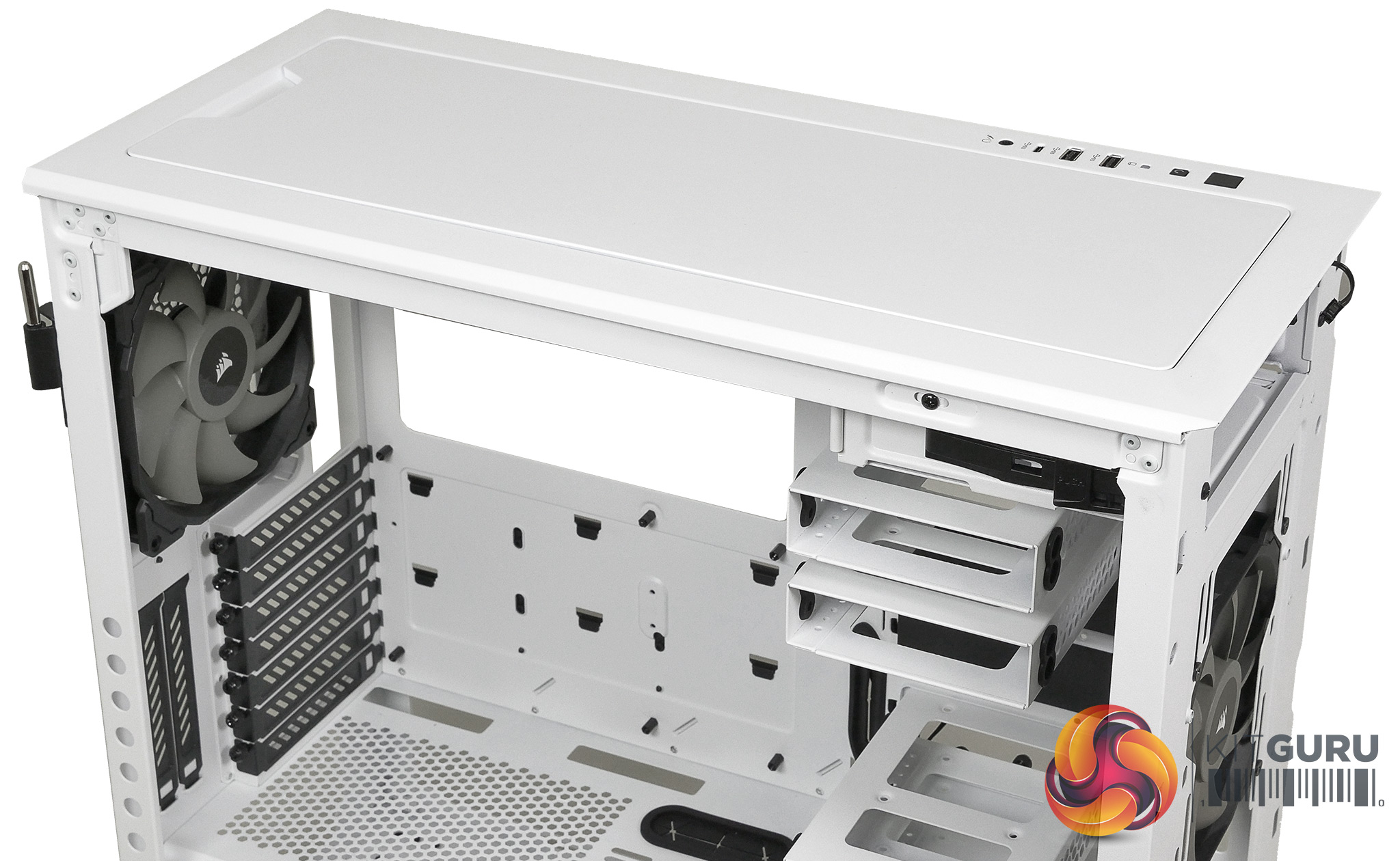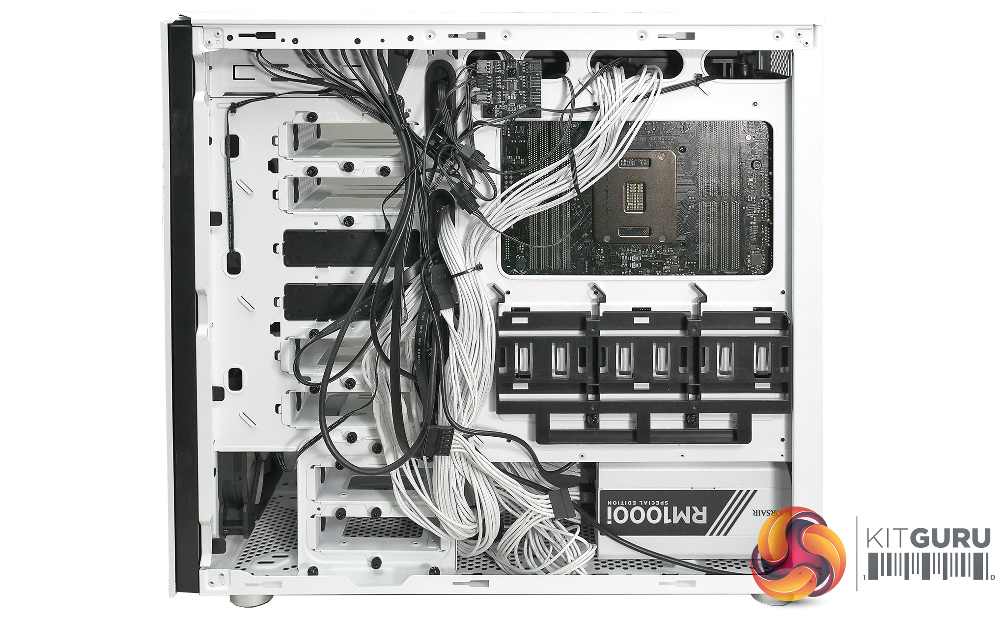 During our build we also struggled somewhat with cable management. There is a reasonable amount of space behind the rear panel but perhaps not quite as much as you would expect from a case that is 239mm wide. There are plenty of anchor points for cable ties but it came as something of a surprise to see Corsair has not employed hook and loop straps to make the job easier.