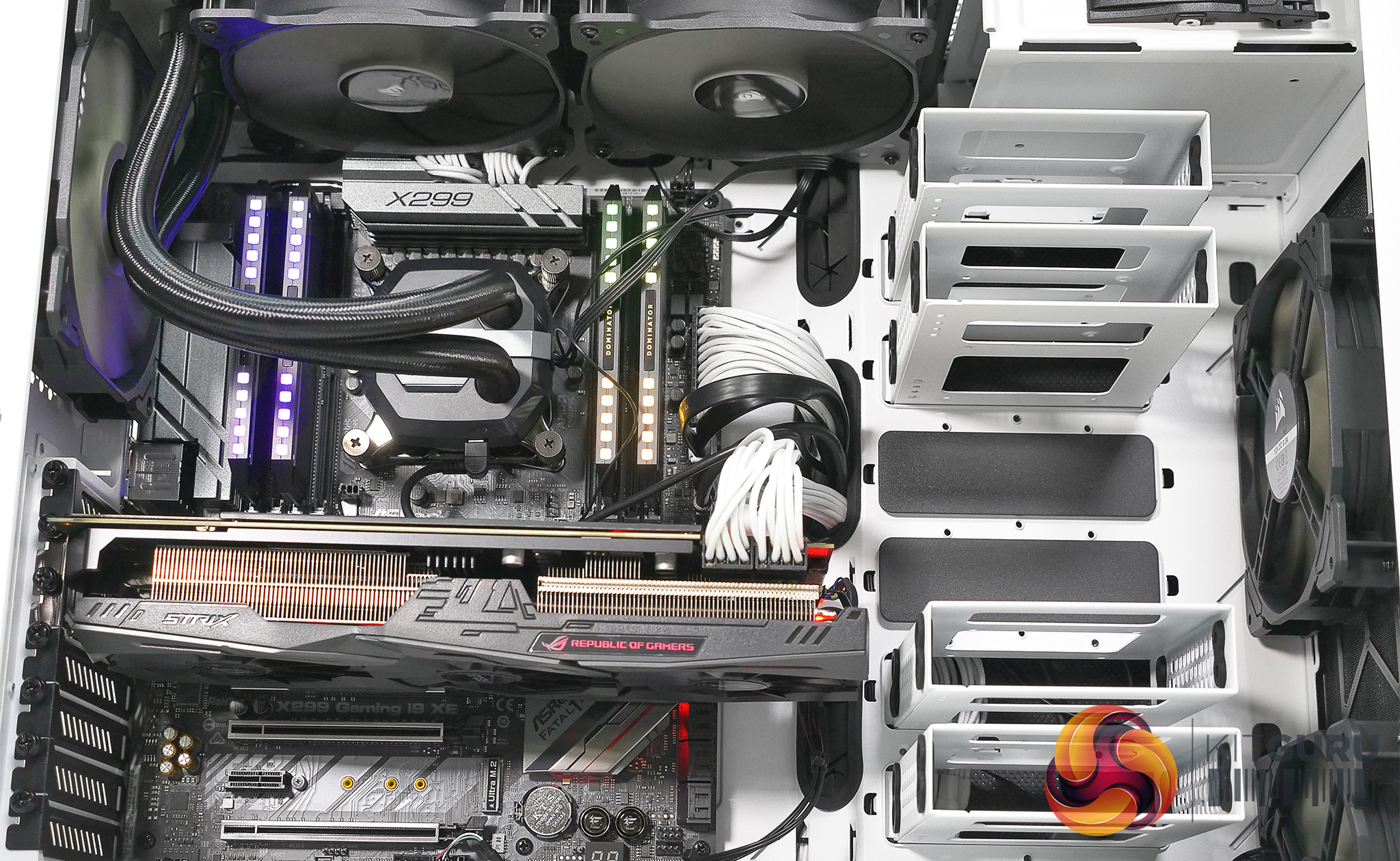 To put this case through its cooling paces we will be using a test system consisting of an Intel Core i9-7920X, RTX 2080 Founders Edition graphics card and an SSD. This system allows us to produce a substantial amount of heat and effectively test the Corsair Carbide 678C‘s cooling capabilities. For stress testing we use AIDA64 to create the maximum amount of load our CPU and GPU are ever likely to see.