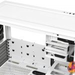 Understanding the air flow in this case took a few minutes of examination. By default the front and top fans are set to intake with the rear fan set to exhaust. In the usual course of things the top fan would also exhaust but it quickly became apparent the front of the case is effectively sealed. If you retain the closed top panel and do not employ the alternate mesh filter, you get effectively zero air flow through the top and front. With the mesh panel in place the top of the case provides a reasonable amount of air flow.