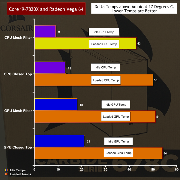 The restricted air flow of this case makes it a no-no for enthusiasts and overclockers, however it is not the complete disaster it might first appear. Our combination of Core i9-7820X and Radeon Vega 64 were perfectly happy inside Carbide 678C with temperatures still in check even with the solid top panel.