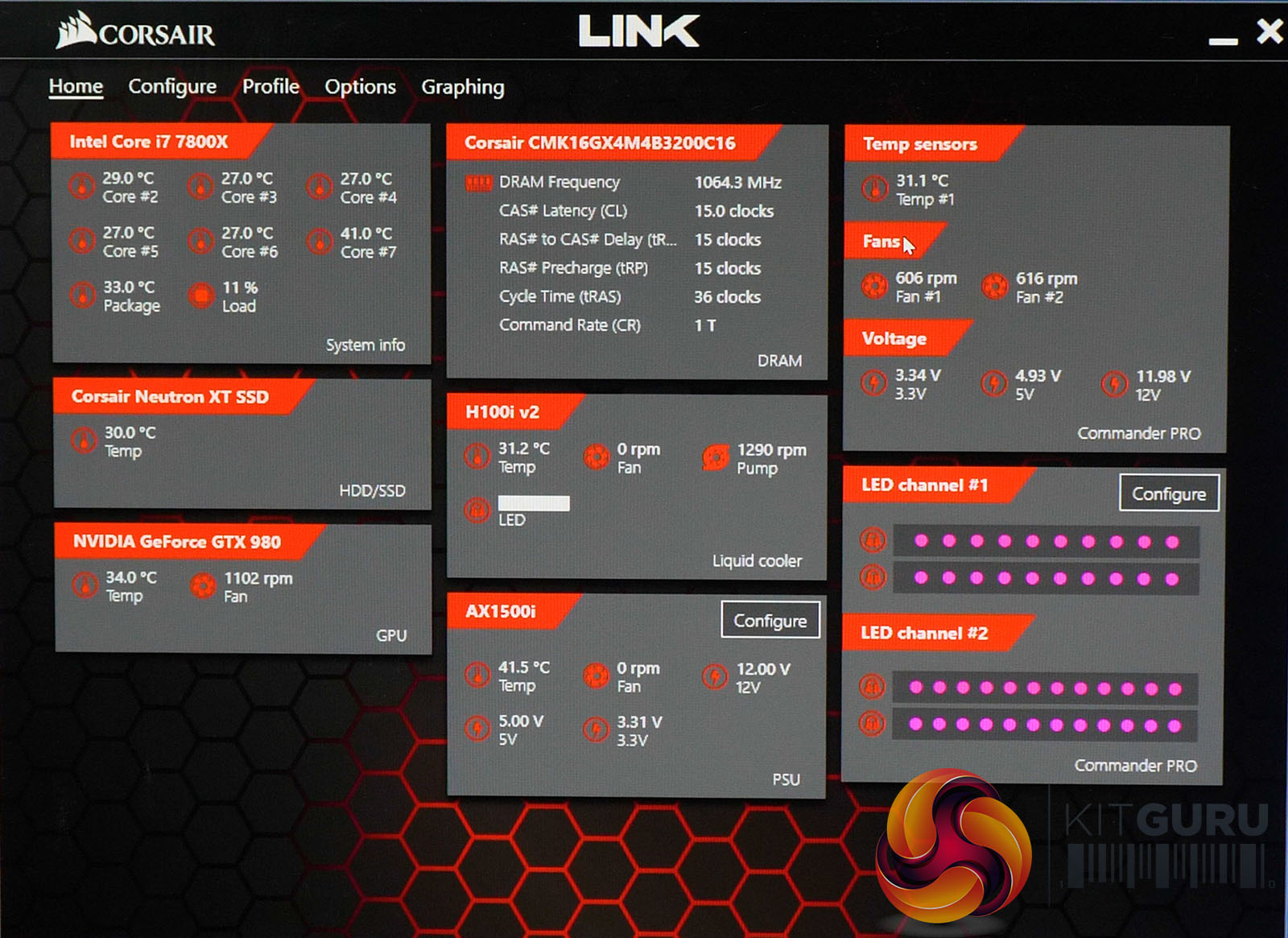 We were impressed by Corsair Commander Pro and the way the Link software lived up to its name and linked the accessories together with a common user interface. Once the hardware is in place and connected you can use Link to monitor every aspect of your PC but more importantly you can control the cooling performance, noise levels and lighting in a very satisfactory manner.