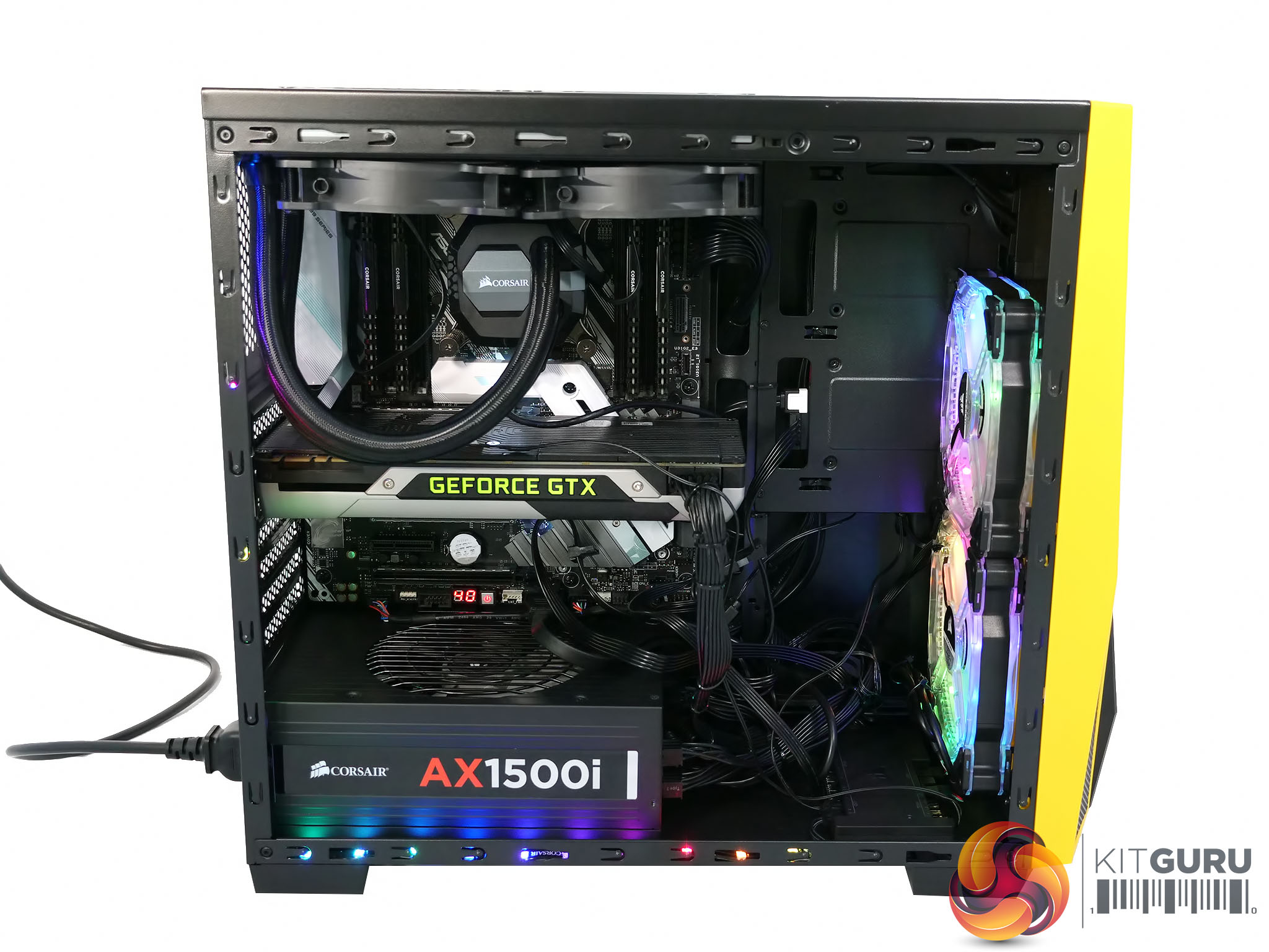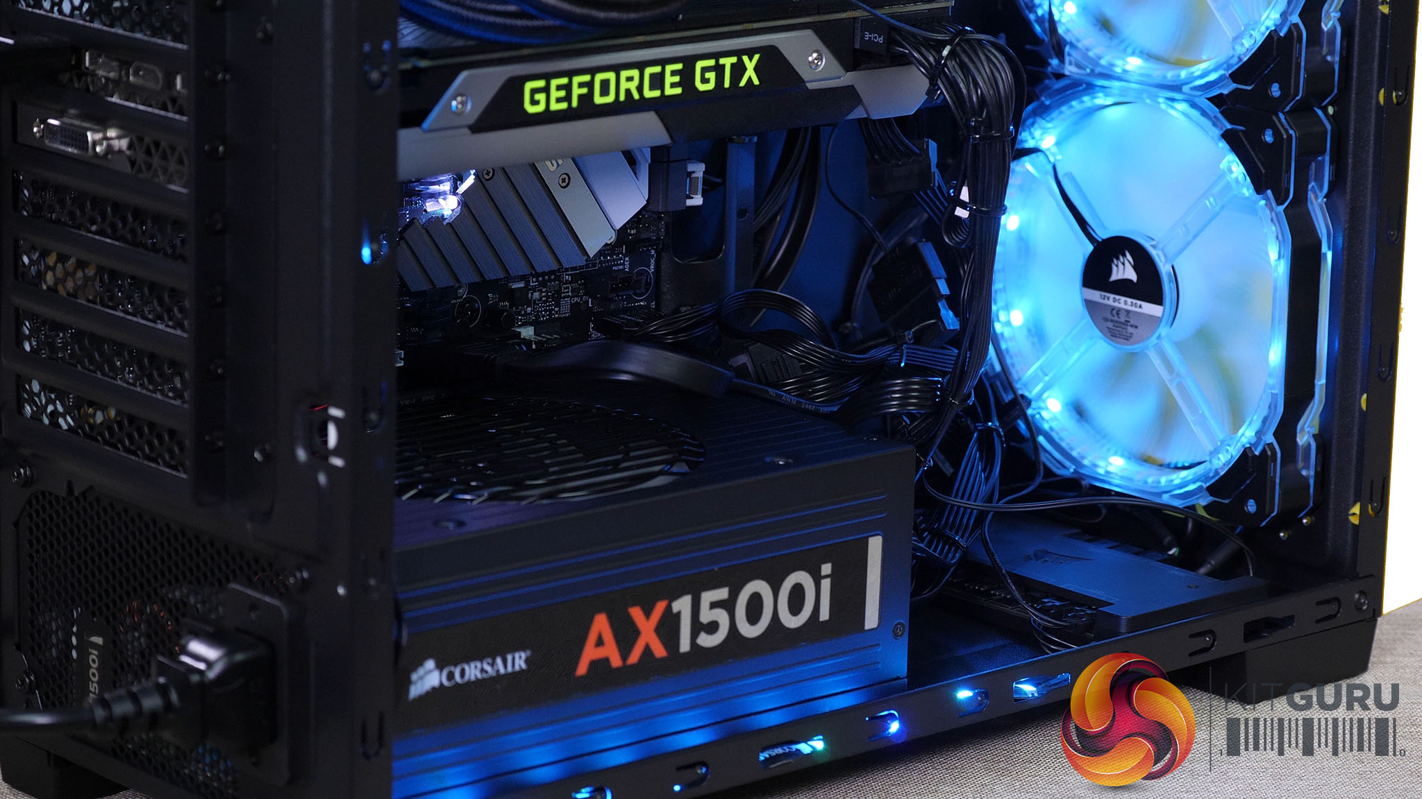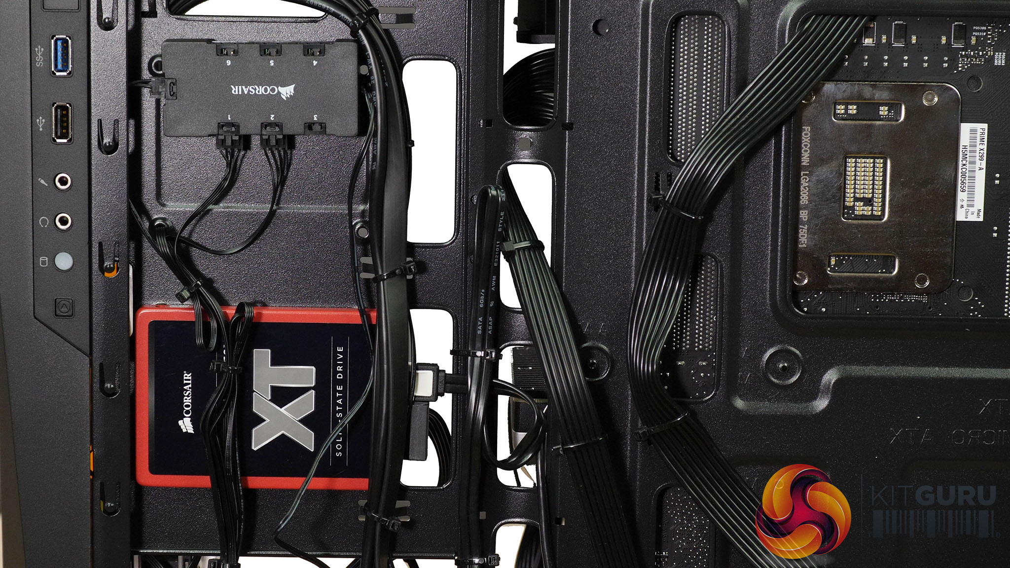 So we deliberately went in the opposite direction and installed as much Corsair hardware as possible inside a budget SPEC-04 case. This worked surprisingly well, apart from the fact the SPEC-04 has the bare minimum of cable management. So, basically, sorry about the cable mess in front of the power supply. That’s our bad.