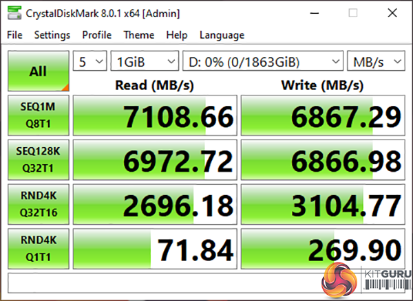 A quick run of CrystalDiskMark 8 in NVMe mode demonstrates the E18 controller delivers 7.1GB/sec Read and 6.9GB/sec Write versus 5.0GB and 4.3GB/sec for the E16 controller. That's a hefty percentage increase in performance from the first generation of PCIe Gen. 4 controller and as the price increase is fairly minor you may well have already decided to whip out your credit card and to place an order.
