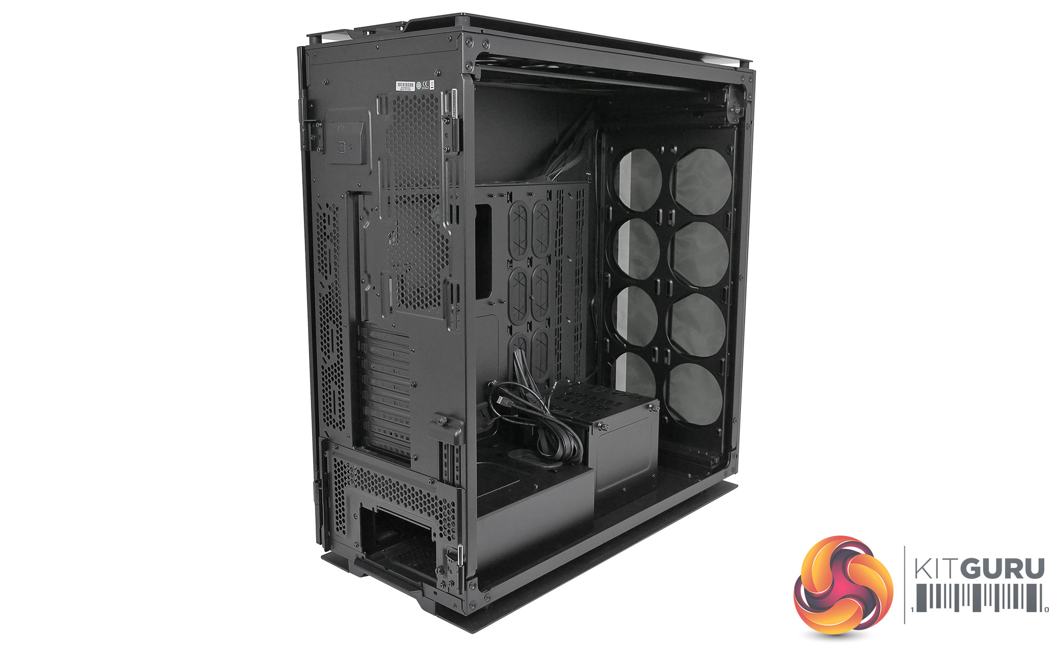 Corsair highlights the fact that the Obsidian 1000D support 21 fans out of the box with 16 at the front (that’s two 480mm radiators with fans arranged in push/pull), three fans in the roof and two at the rear. Corsair had populated the entire collection and the result was impressive, so it took us a while to appreciate the 1000D is supplied without any fans at all. When you consider that a triple pack of Corsair LL120 fans costs £90, well, you can do the maths.
