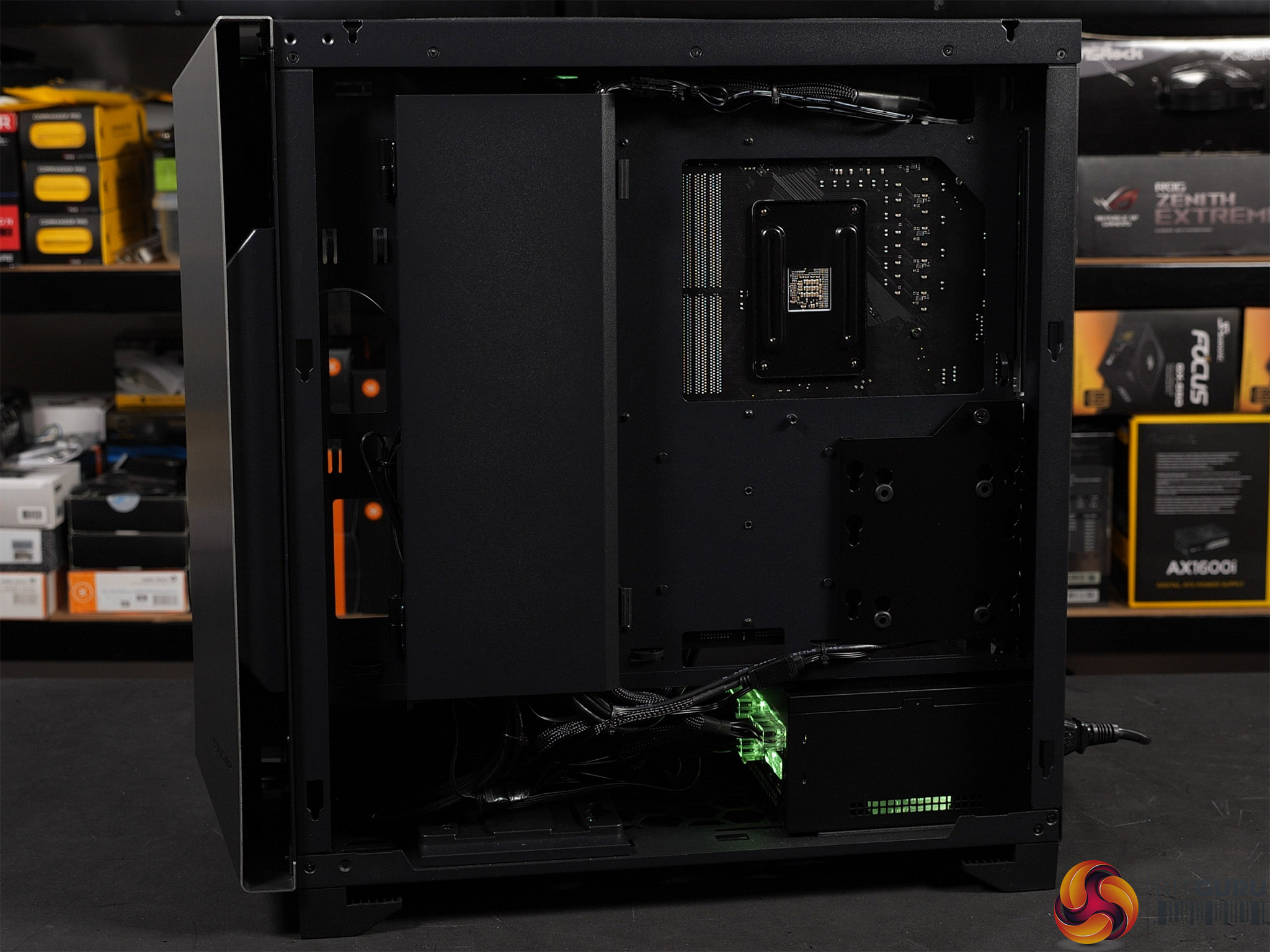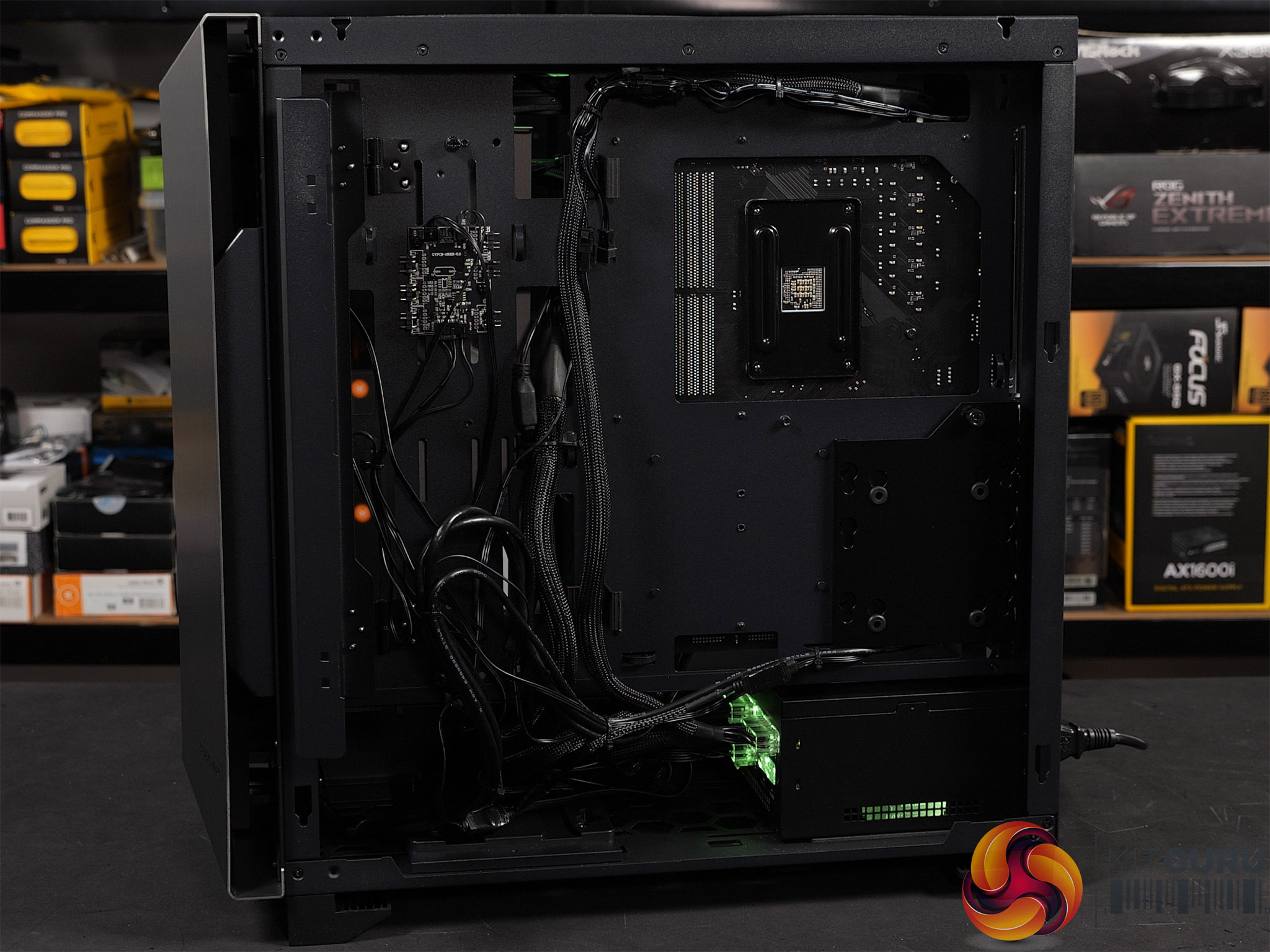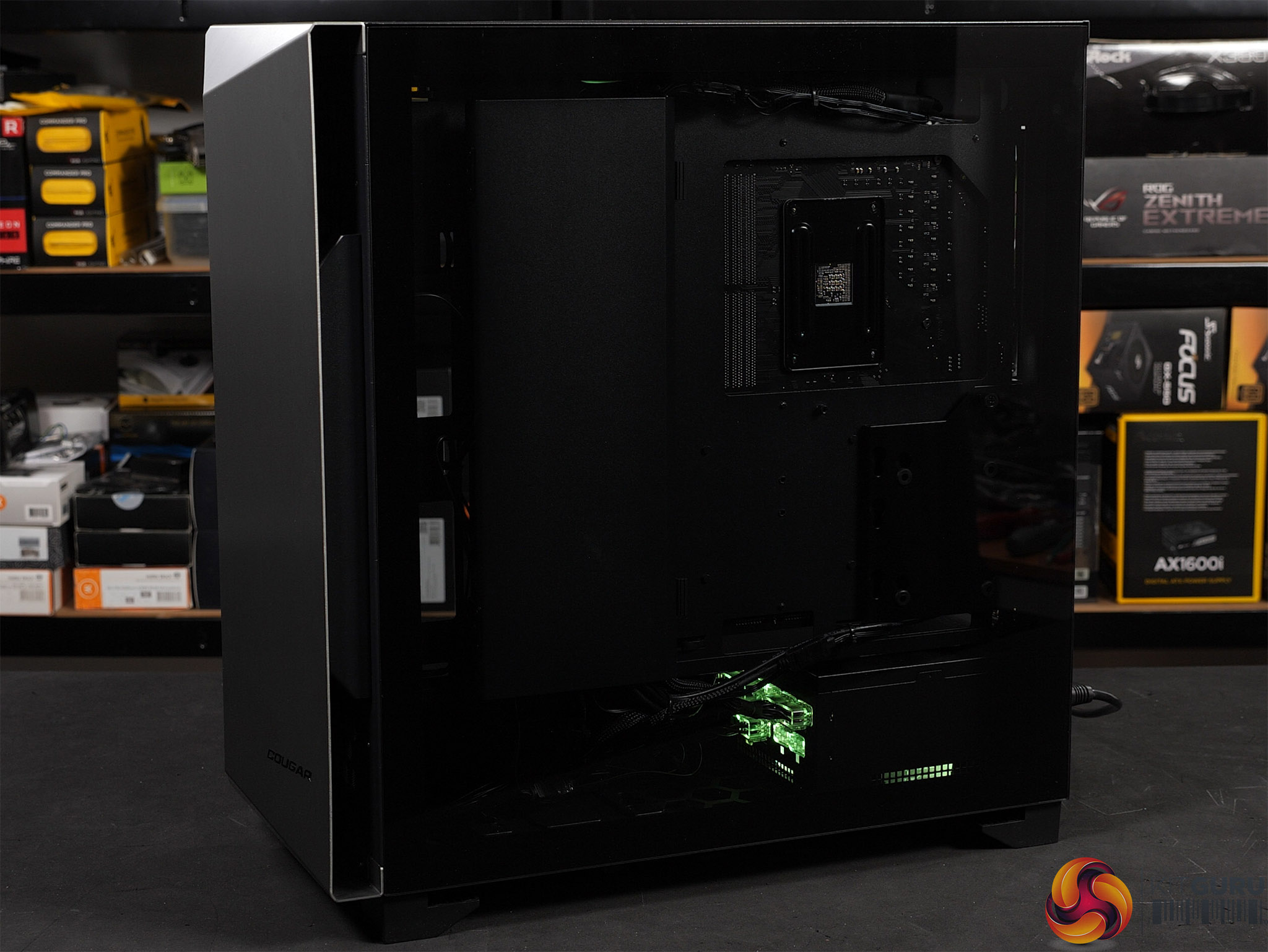 Building our test system was simple enough, however it took a fair amount of work to make it look neat and tidy as there are glass panels on both sides so there is little scope for hiding things away. Cougar makes a feature of the aluminium cable management plate in the main compartment while you have a plastic cable cover in the rear section – but even so you have to route the cables carefully to avoid a mess.