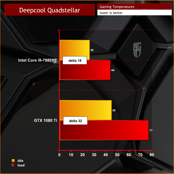 To put this case through its cooling paces we will be using a test system consisting of an Intel Core i9-7980XE, EVGA GTX 1080 Ti and an SSD. This system allows us to produce a substantial amount of heat and effectively test the Deepcool GamerStorm Quadstellar‘s cooling capabilities.