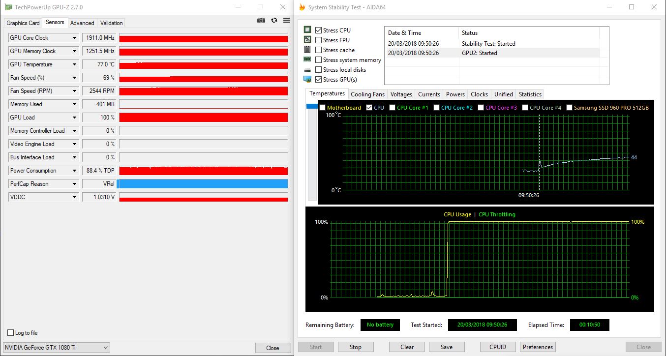For stress testing we use AIDA64 to create the maximum amount of load our CPU and GPU are ever likely to see.