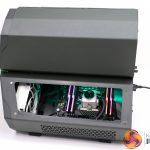 In the bottom of the case we installed a Sea Sonic 600W Prime Titanium Fanless that looks absolutely tiny and up top where you find eight drive caddies we installed … nothing. The only storage drive in the PC was a single, solitary M.2 SSD but honestly, if we had slipped two or three drives into the caddies the Quadstellar would still have looked half empty.