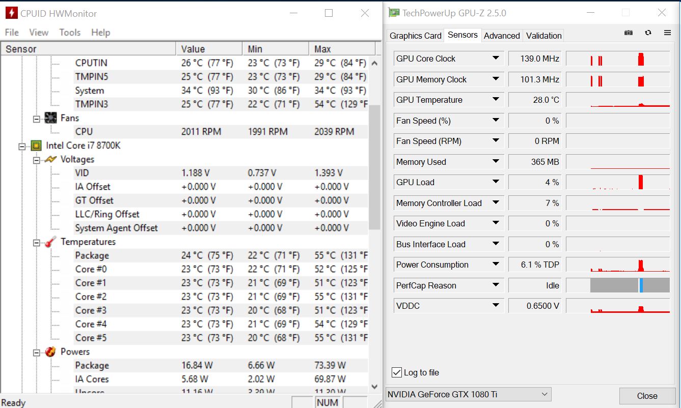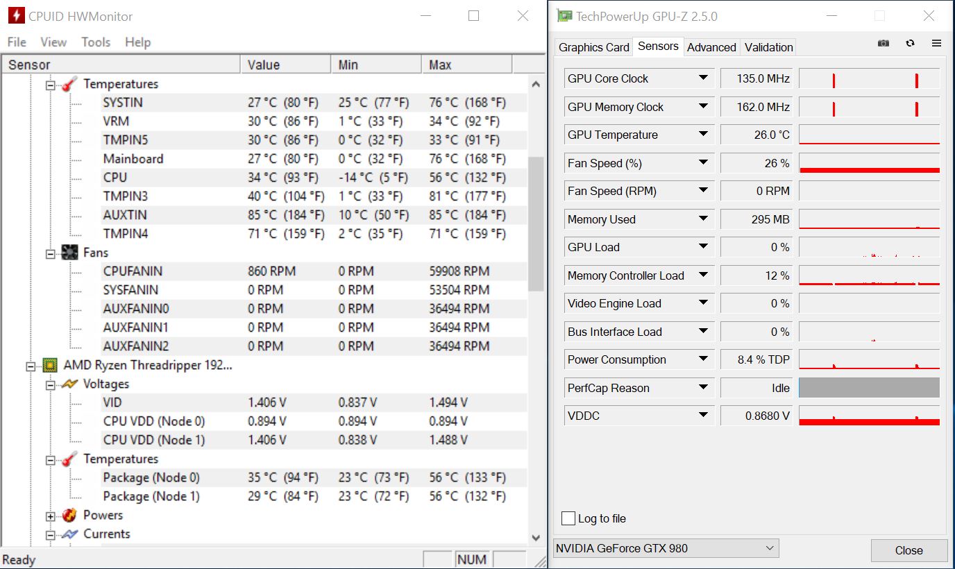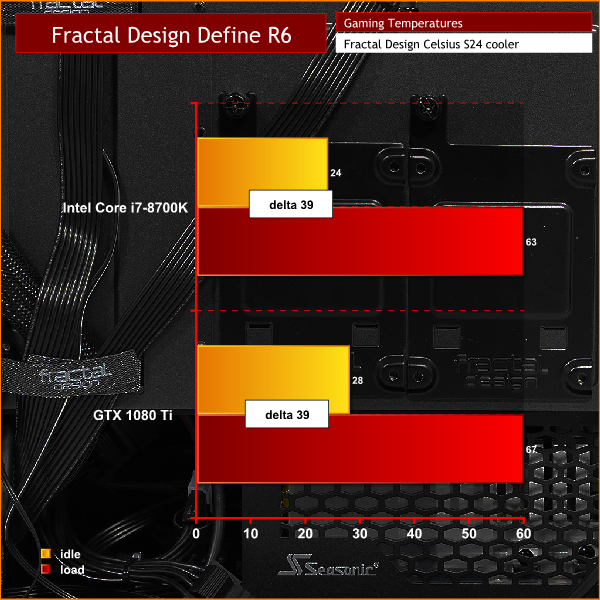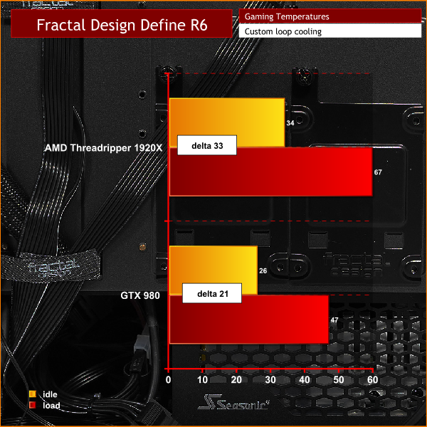 Both system worked very well. The Define R6 has very good air flow (with the top ModuVent panel open) and we were entirely happy with the result. Probably the weakest part of the system was the CPU block on the Threadripper, Air flow was absolutely fine.