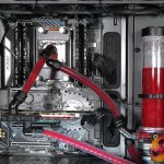 On the other hand if you move the Modular Storage Plate and convert the Define R6 to Open Layout (our Gunmetal system with Threadripper) you can add as much liquid cooling as your heart could desire and just as importantly the hardware will be on show behind that fabulous glass side panel. The only Gotcha here is that you don’t get a pump mount and while Fractal Design tells us you can use the pump bracket from Define Nano S on the bottom plate below the HDD trays it is not included with the Define R6 so that’s not much help. Unless you fancy banging some holes in the vertical wall of the case to mount your reservoir, the obvious move is to hang the pump/reservoir combo from the front radiator, exactly as we have done.
