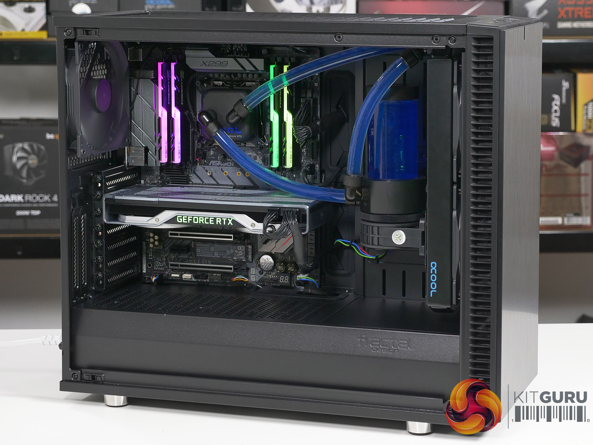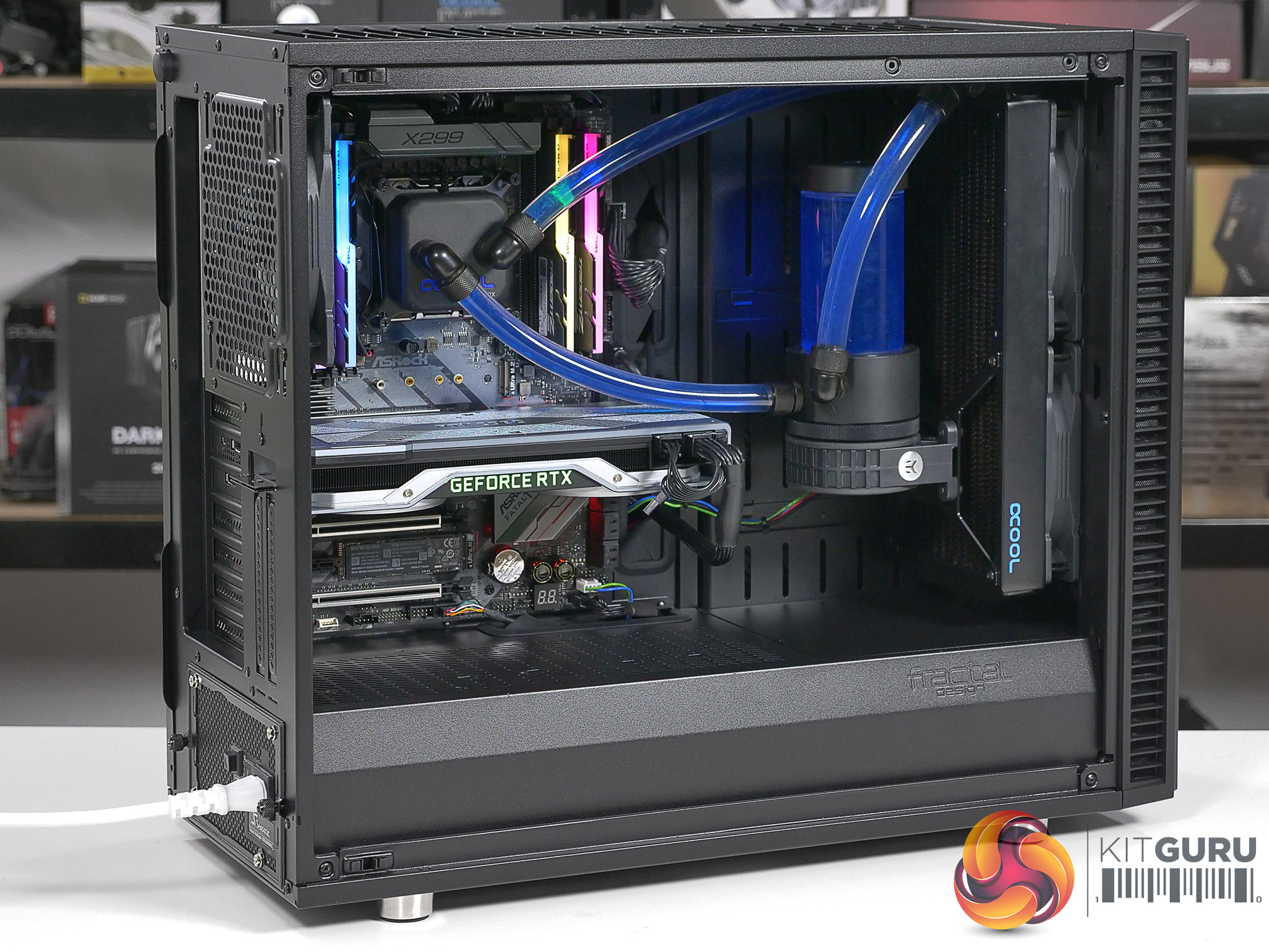As you will see in our video, we were less impressed by minor features such as the reservoir mounts on the mid-plate. We also had problems with the perforated floor of the case as the screws we used to secure a pump interfered with the full length dust filter. One point that is frustrating is that the 3 included fans – 140mm Fractal Design Dynamic X2 GP-14 1,000rpm models – are not PWM, despite the the PWM version of the same fan only costing just an extra £1 at retail here in the UK.