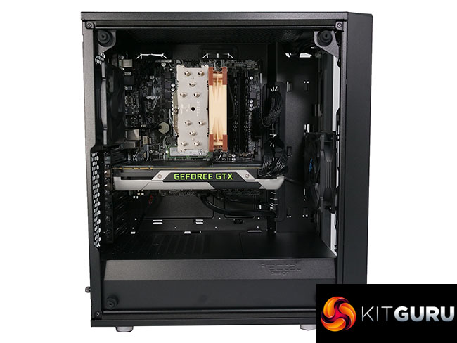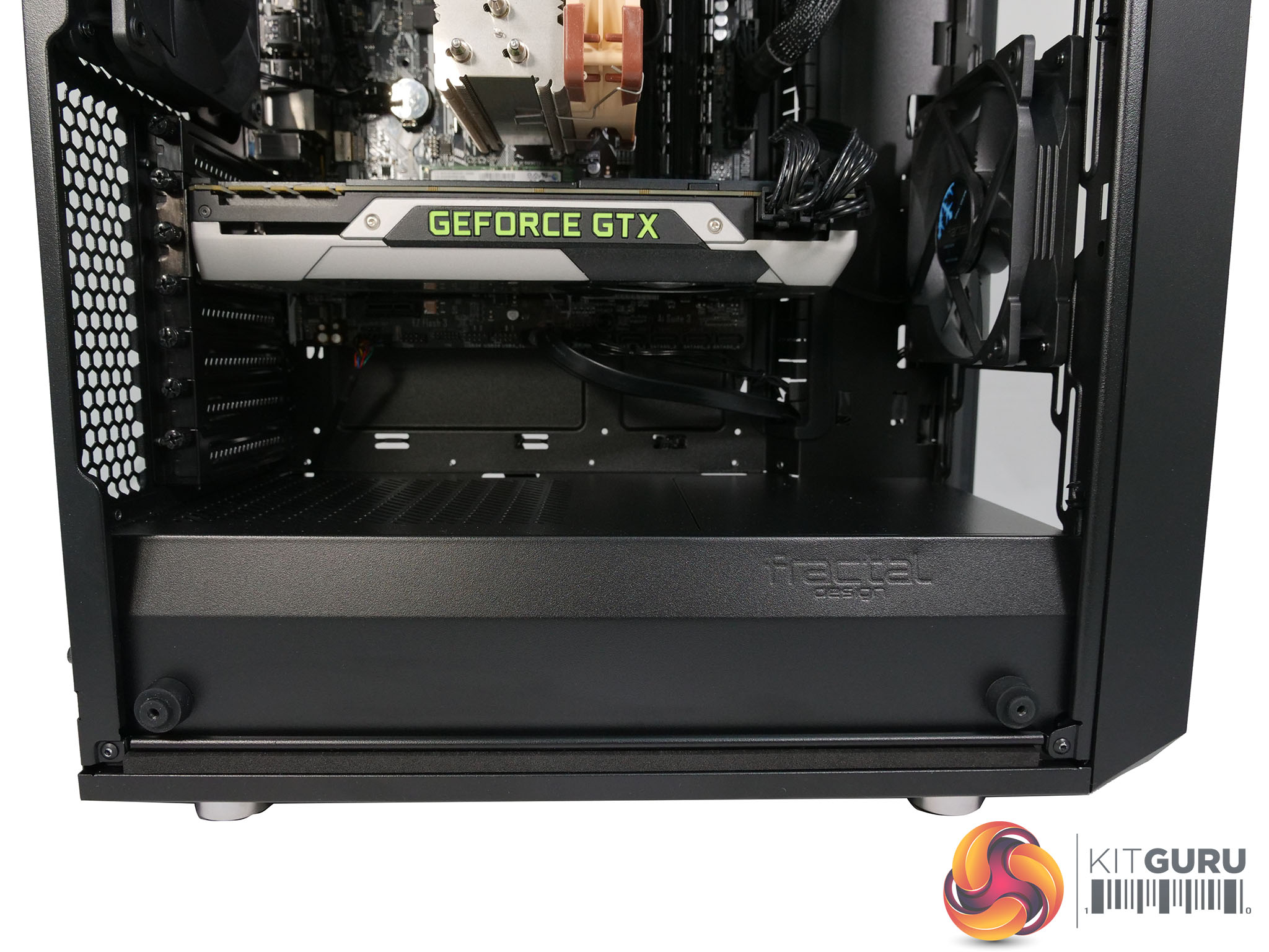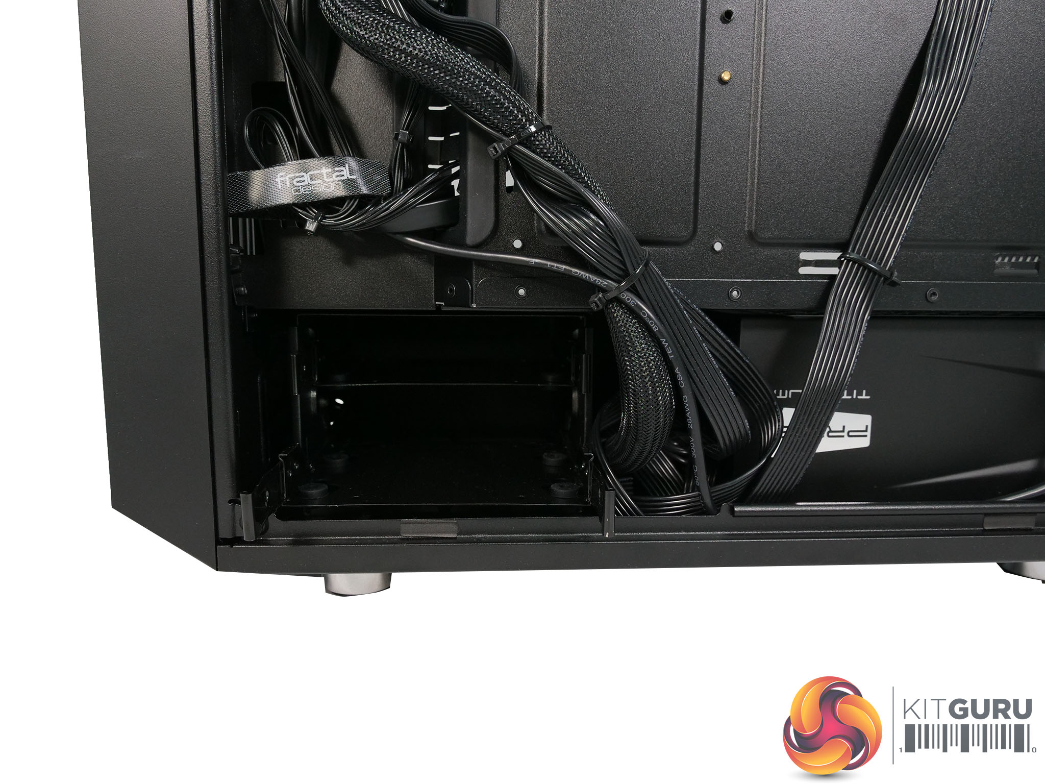Instead the Meshify C naturally lend itself to air cooling, rather than liquid, which means the options for installing a radiator at the front of the case look somewhat irrelevant. Having said that, you may well wish to remove the drive cage as it takes up a good deal of space in the lower compartment and gets in the way of the power supply cables.
