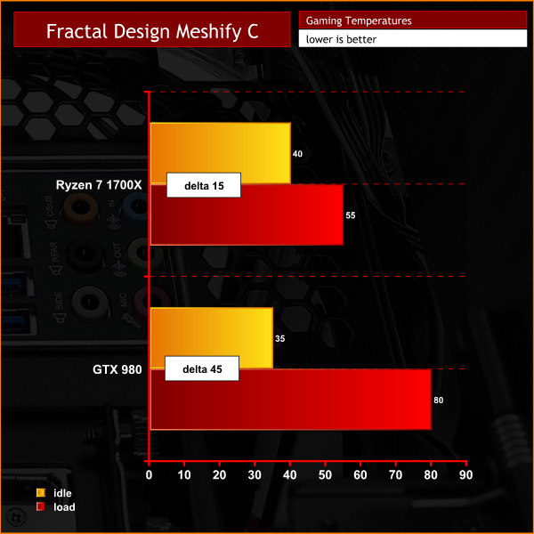 To put this case through its cooling paces we will be using a test system consisting of an AMD Ryzen 7 1700X, reference GTX 980 and an SSD. This system allows us to produce a substantial amount of heat and effectively test the Fractal Design Meshify C‘s cooling capabilities.